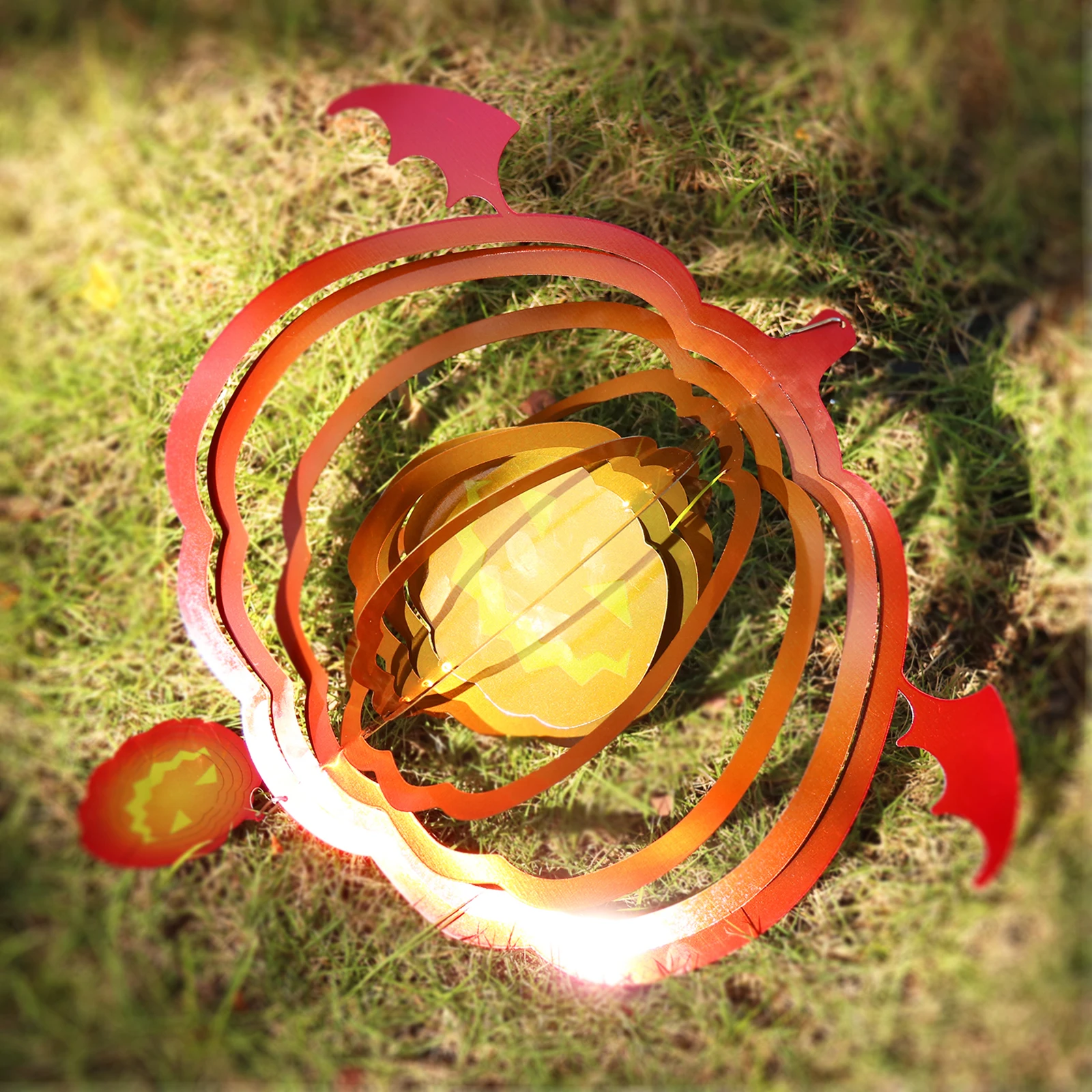 Pumpkin Wind Chime - Stainless Steel Windmill with S Hook, Kinetic 3D Rotating Heart-shape Pendant, Wind Catchers Hanging Wind Chimes for Home Garden Yard Tree Holiday Decoration