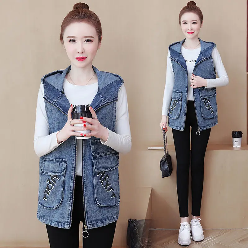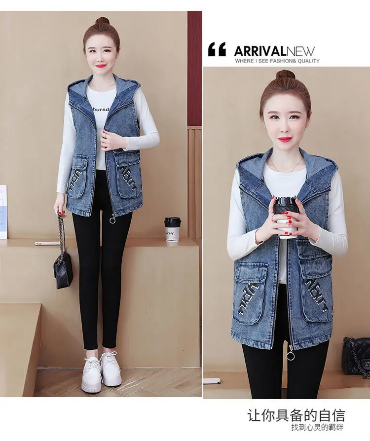 Отзывы о Женский джинсовый жилет с капюшоном джинсовая куртка в Корейском стиле весна 2022 -