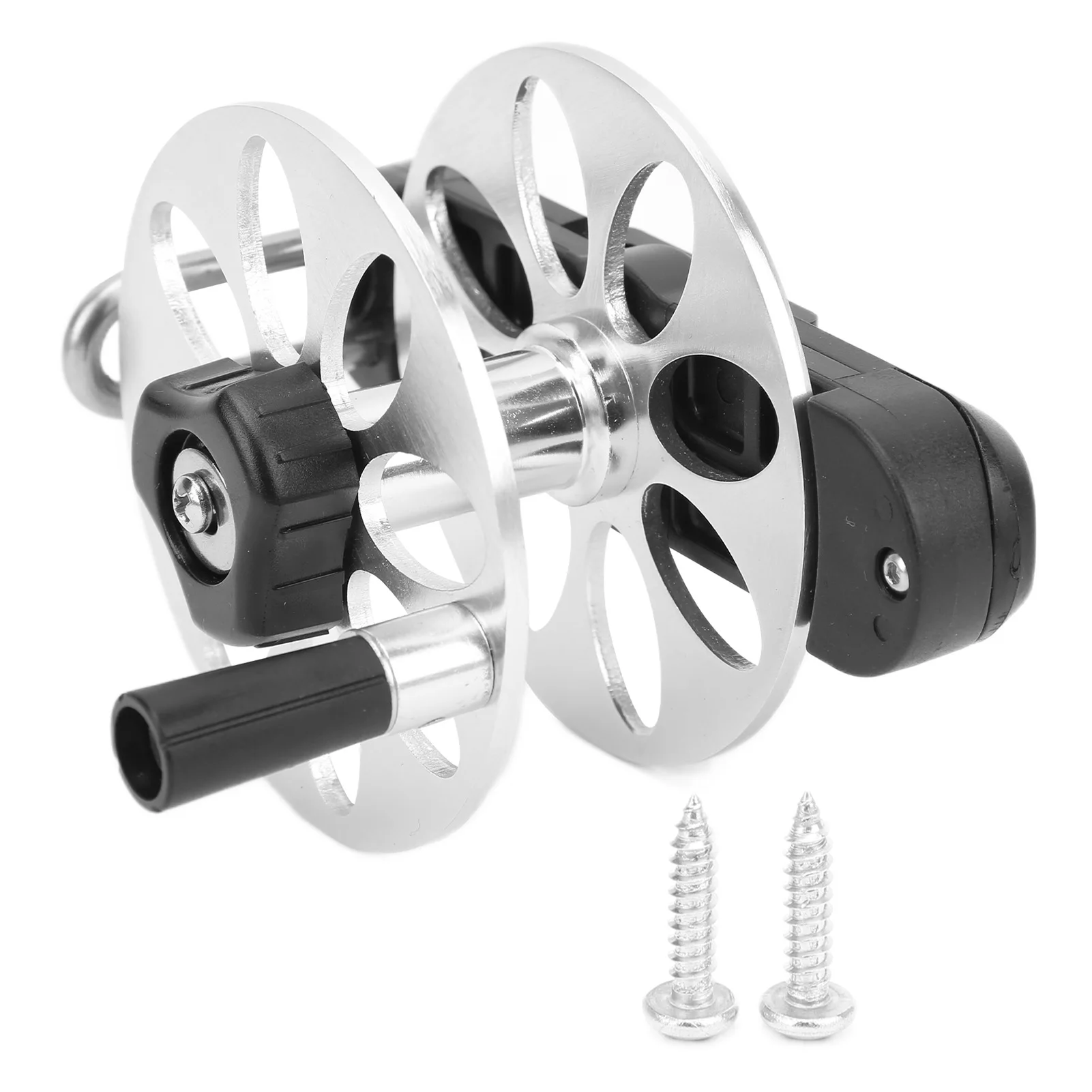 Изготовлен из высококачественного алюминиевого сплава, между тем, он прочный, прочный и имеет текстуру.Использование проволочной петли рыбьего колеса полезно для высвобождения и втягивания, Скользкого и даже в использовании, не повреждая леску.Разделенное основание можно легко установить и разобрать, а Складная ручка также в определенной степени уменьшает пространство для хранения, поэтому его можно легко хранить.Регулируемое натяжение вращающейся ручки, вы можете регулировать натяжение колеса в соответствии с их собственными потребностями.Он подходит для большинства рыбных орудий на рынке и может быть обернут около 50 м/54.7yd 2 мм/0.1in PE лески.Параметры