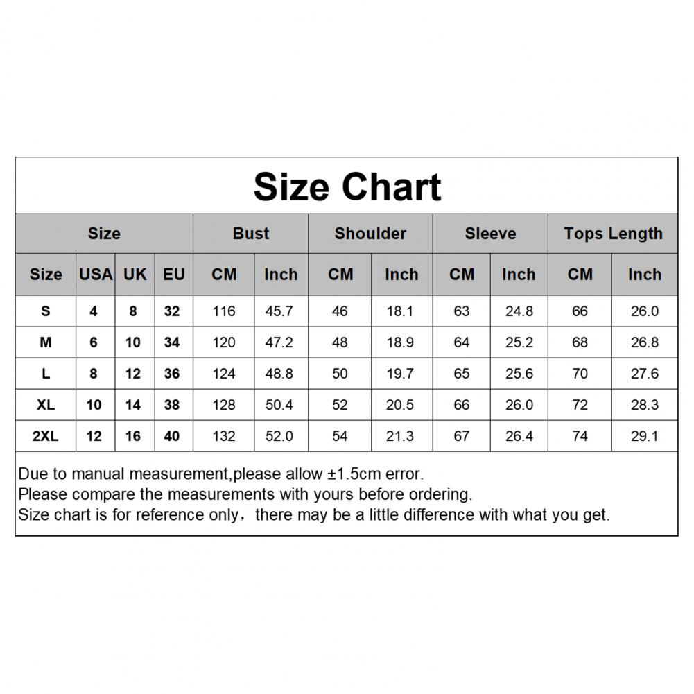 Размер: 2XL, обхват груди: 132 см/52 дюйма, рукав: 67 см/26,4 дюйма, длина: 74 см/29,1 дюйма, ширина плеч: 54 см/21,3 дюйма (прибл.)