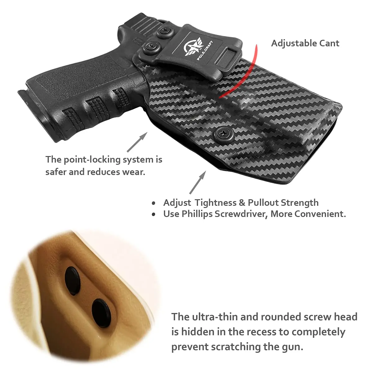 Носить с собой с уверенностью: пожалуйста, не стесняйтесь использовать Полюс. Ремесло Портативный Скрытая кобура для защиты для Glock 19 Кобура. Это наше углеродное волокно третьего поколения Kydex кобура IWB специально для Glock 19 19X 23 25 32 45 (Gen 1-5) кобура. Он не только высокоточный, но также прочный и прочный, может быть скрыт и портативный, так что вы можете защитить себя в любое время и в любом месте.