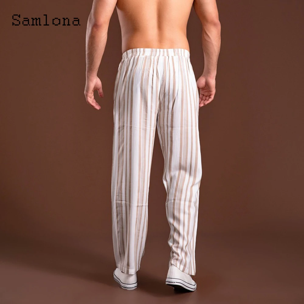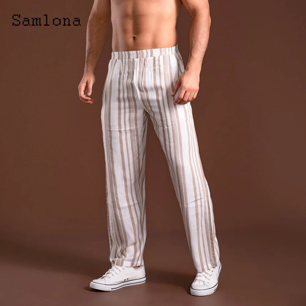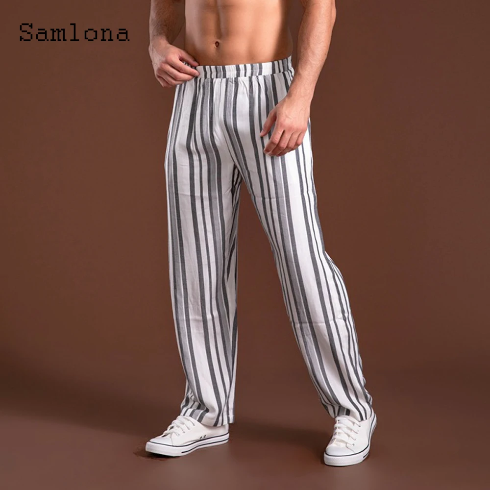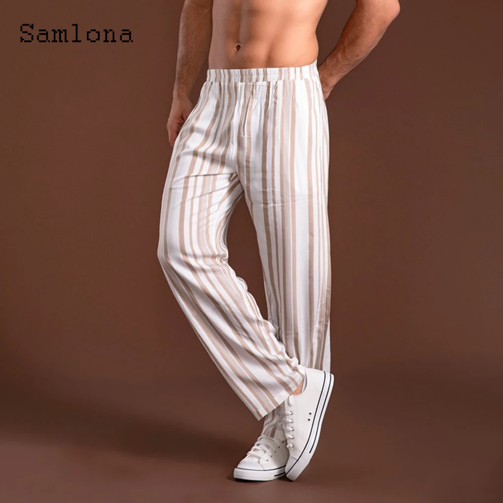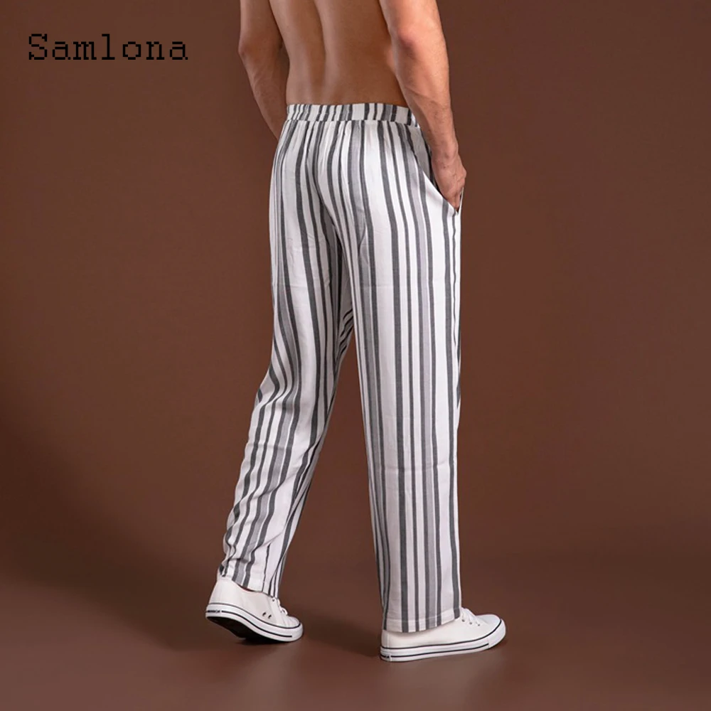 Отзывы о Мужские брюки в полоску с карманами и подставкой свободные со шнуровкой модные