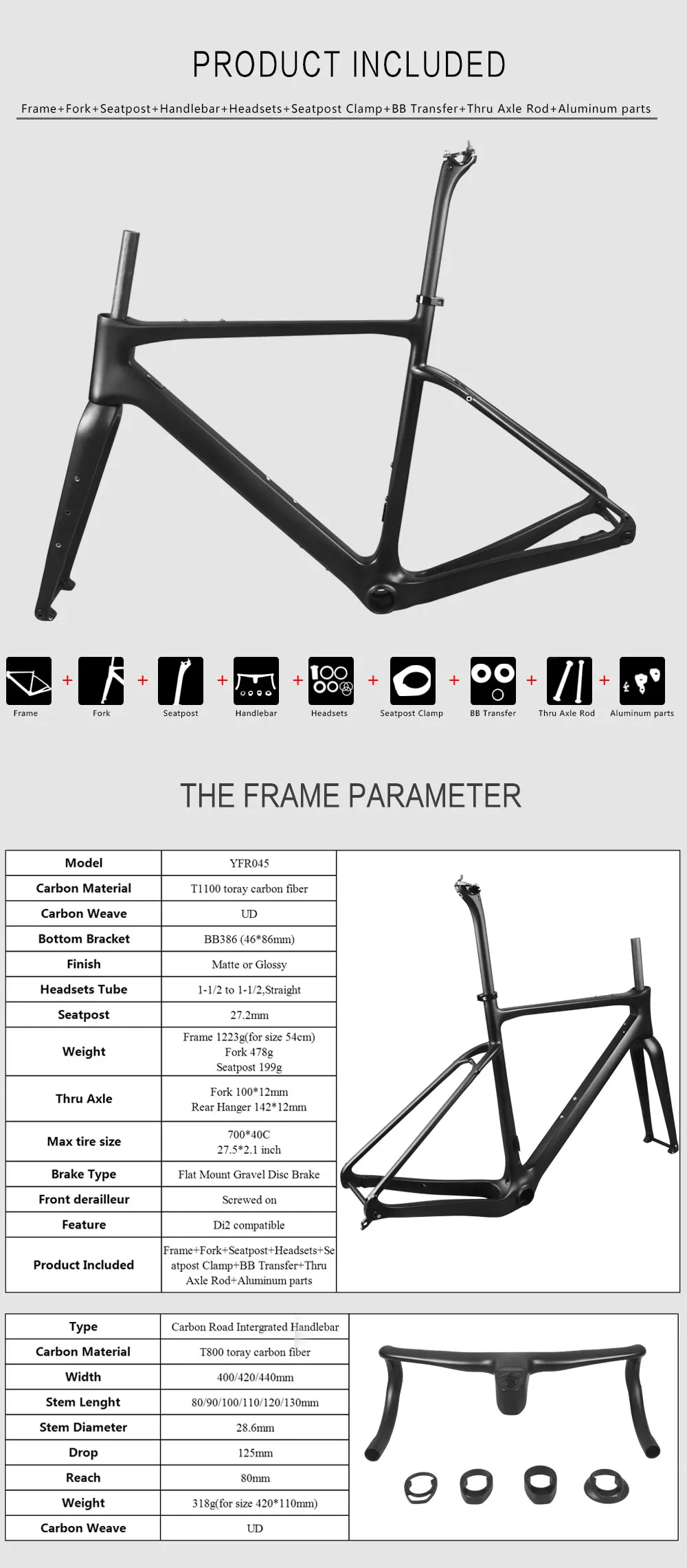 2. Тип оправы: YFR045 углеродный гравий рама велосипеда