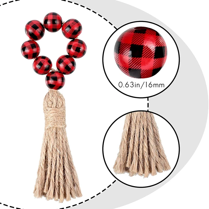 Узор в клетку буйвола: каждое кольцо для салфеток с деревянными бусинами для Хэллоуина натянуто несколькими бусинами на прочной веревке, не легко распускать или сломать, пожалуйста, будьте уверены в использовании, И классический узор в клетку буйвола напечатан на поверхности круглых деревянных бусин, не легко выцветать Или хлопать с течением времени