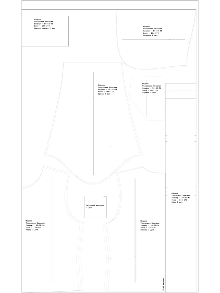 - выкройка на бумаге, на 1 листе размеры 50,52,54