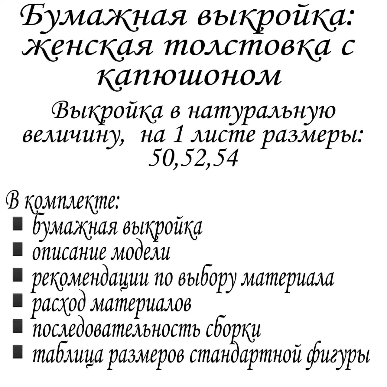 Отзывы о Бумажная выкройка женской толстовки с капюшоном размеры:50 52 54 на рост 164-170 | Дом и