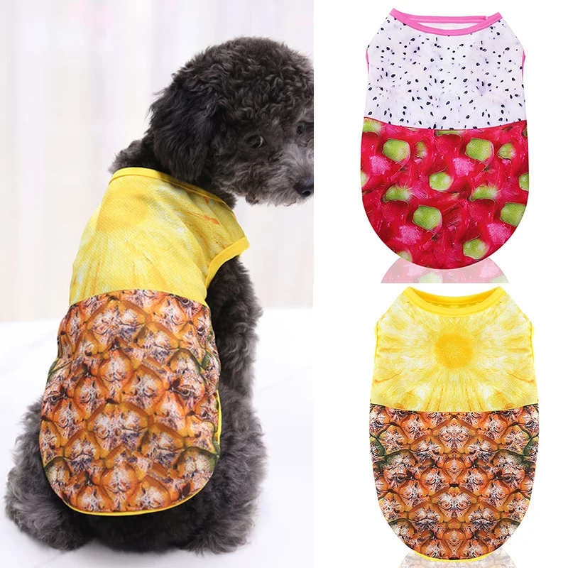 Маленький Средний аксессуар для собаки, одежда для собаки с ананасом, модная футболка, жилет, тонкий жилет с изображением дракона и фруктов