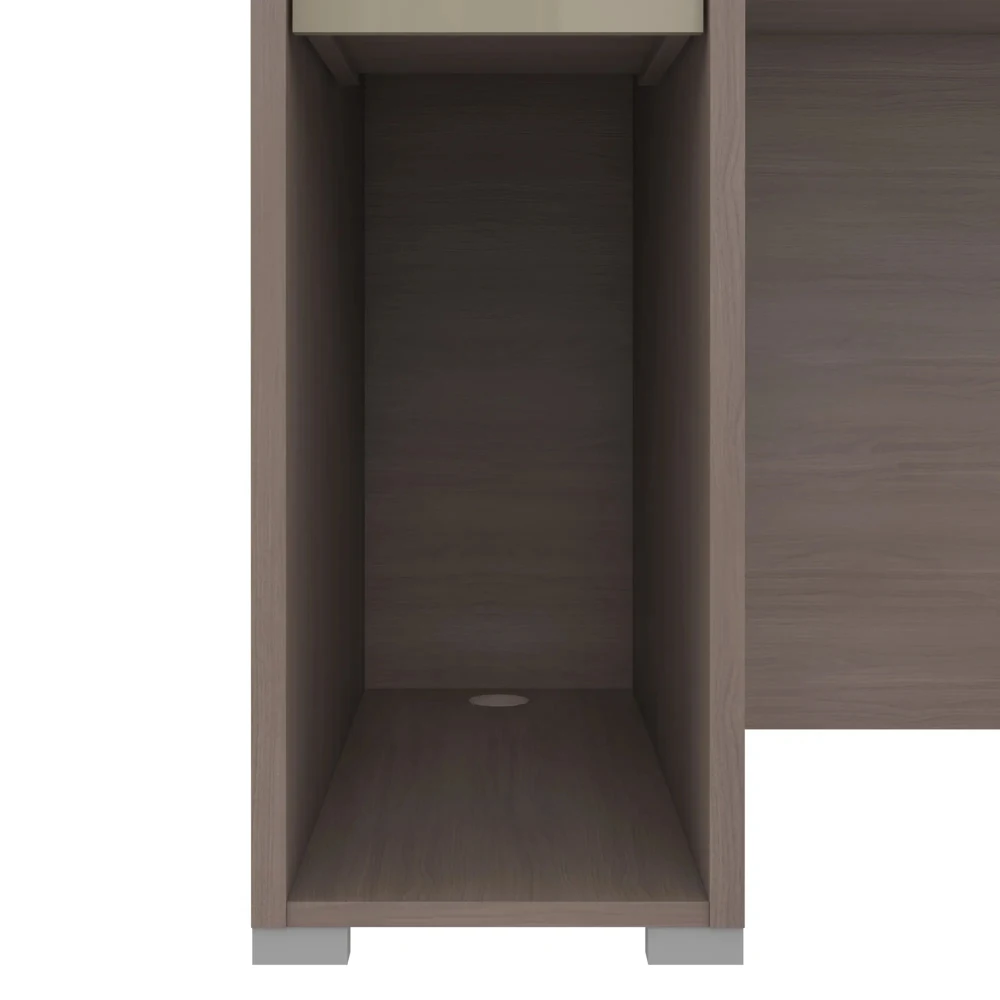 Тумба с нишей, ящиком и органайзером. Функциональная тумба имеет пространство для установки системного блока, над ней предусмотрен ящик, а за ящиком есть органайзер с двумя отделениями для канцелярских мелочей.