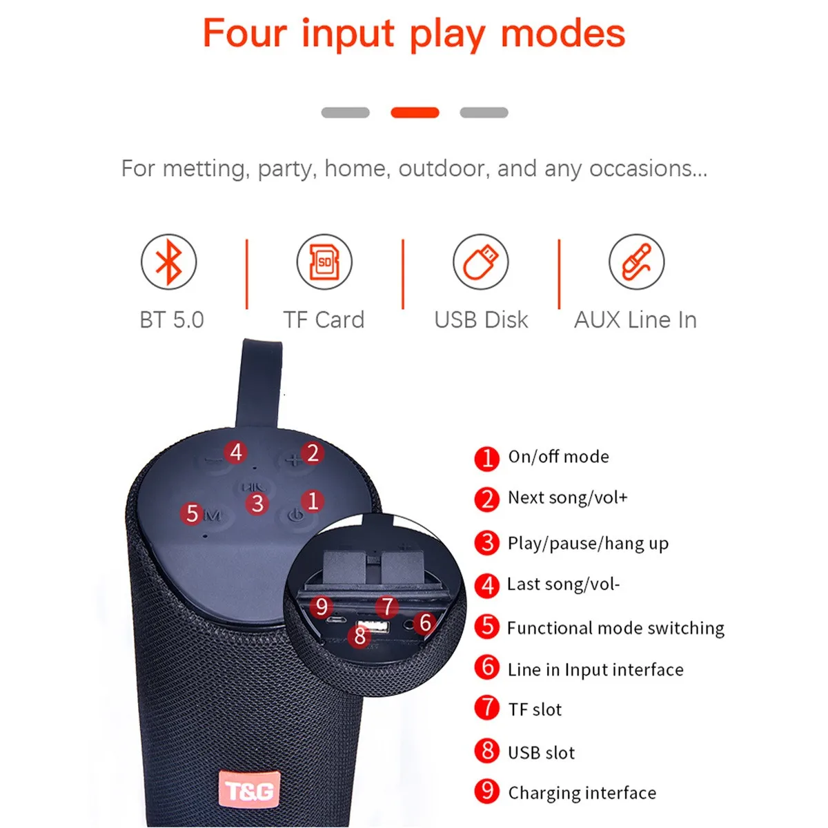 TG169 портативный уличный Bluetooth динамик беспроводная Поддержка FM TF карта низкая Колонка Мини Колонка стерео музыка объемныйХарактеристики: