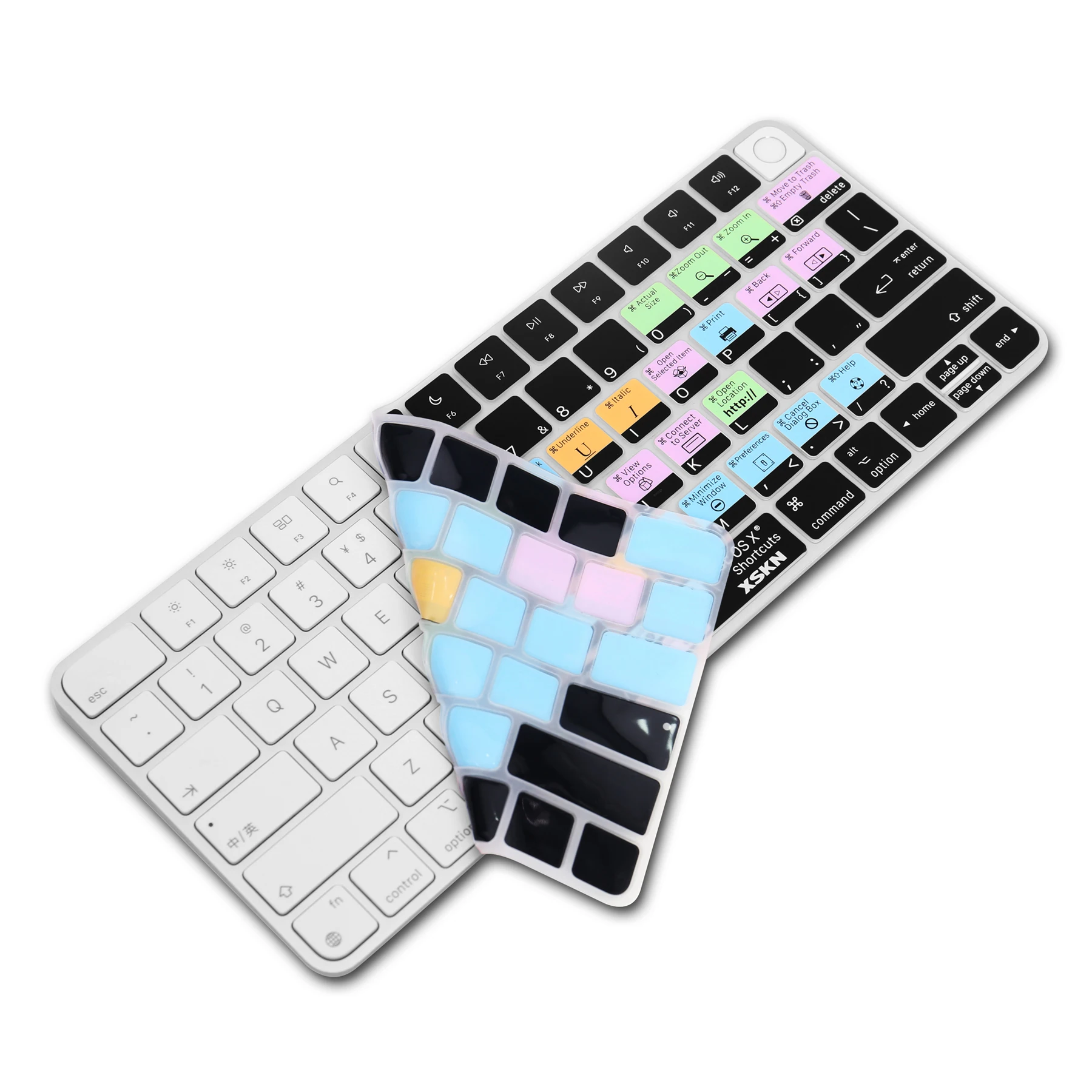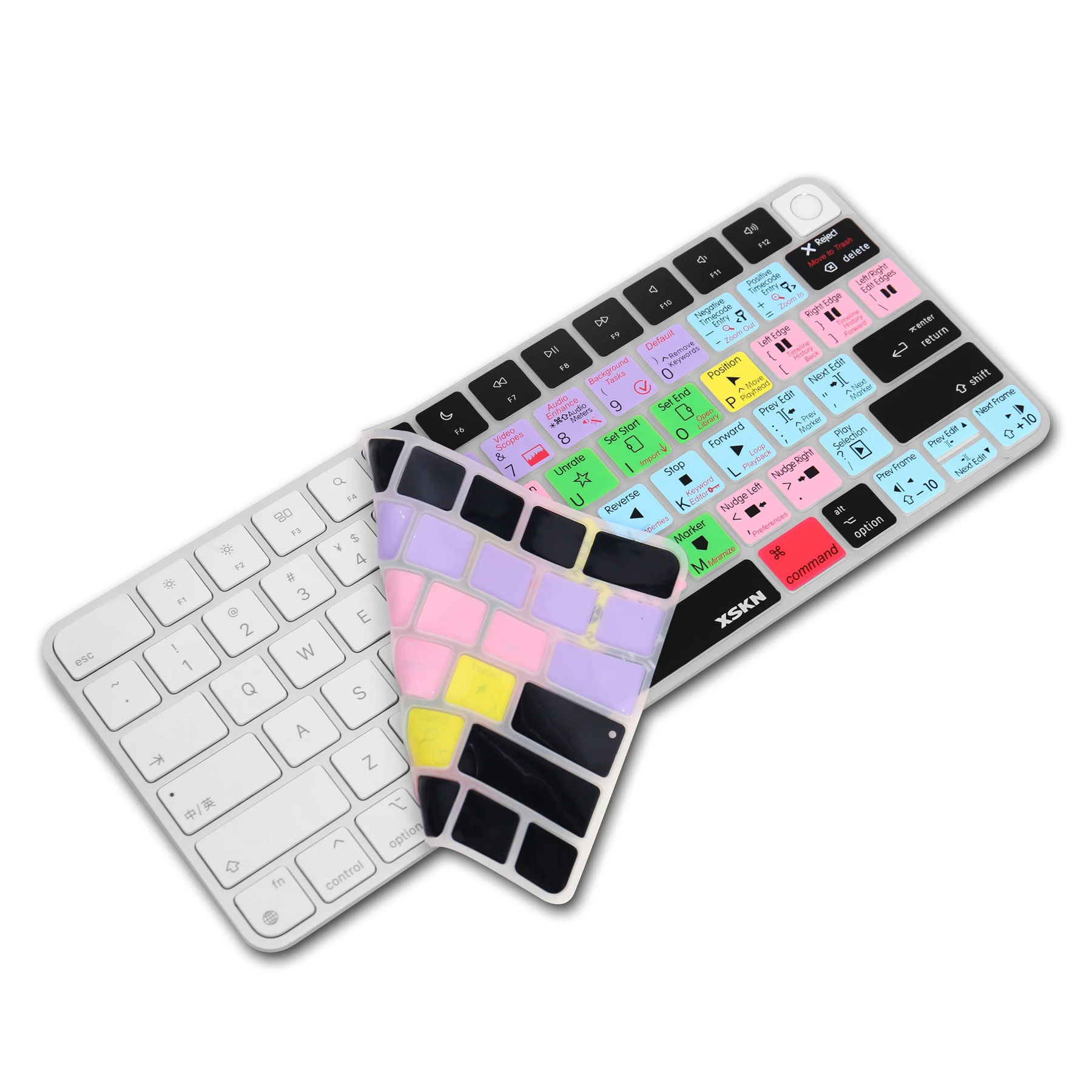 Силиконовая клавиатура XSKN Final Cut Pro, силиконовая клавиатура для 2021 новейшего чипа Apple M1 iMac, 24-дюймовая Волшебная клавиатура A2449 с Touch ID и A2450 с клавишей блокировки (без цифровой клавиатуры)