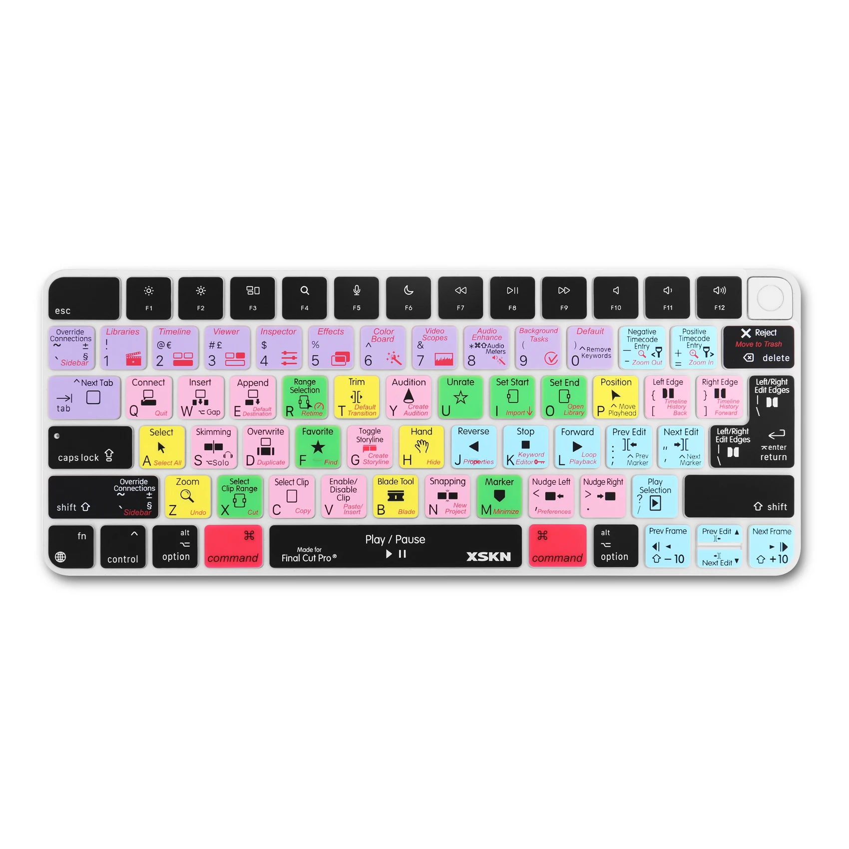 2. Обеспечивает QWERTY расположение символов, английский дизайн ярлыков для программного обеспечения для редактирования видео final cut pro x, подходит для пользователя Final Cut Pro macbook, с новым чехлом для клавиатуры Final Cut Pro, ваши проекты будут редактироваться быстрее, особенно те, кто не знаком с горячими клавишами Final Cut Pro, помогут повысить эффективность вашей работы