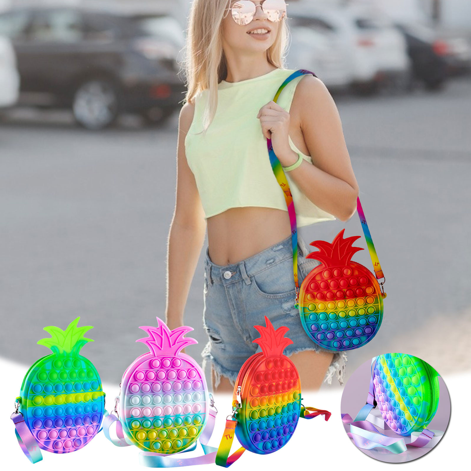 Отзывы о Пуш-пуш для детей Радужный ананас сумка через плечо игрушки-антистресс пузырьки