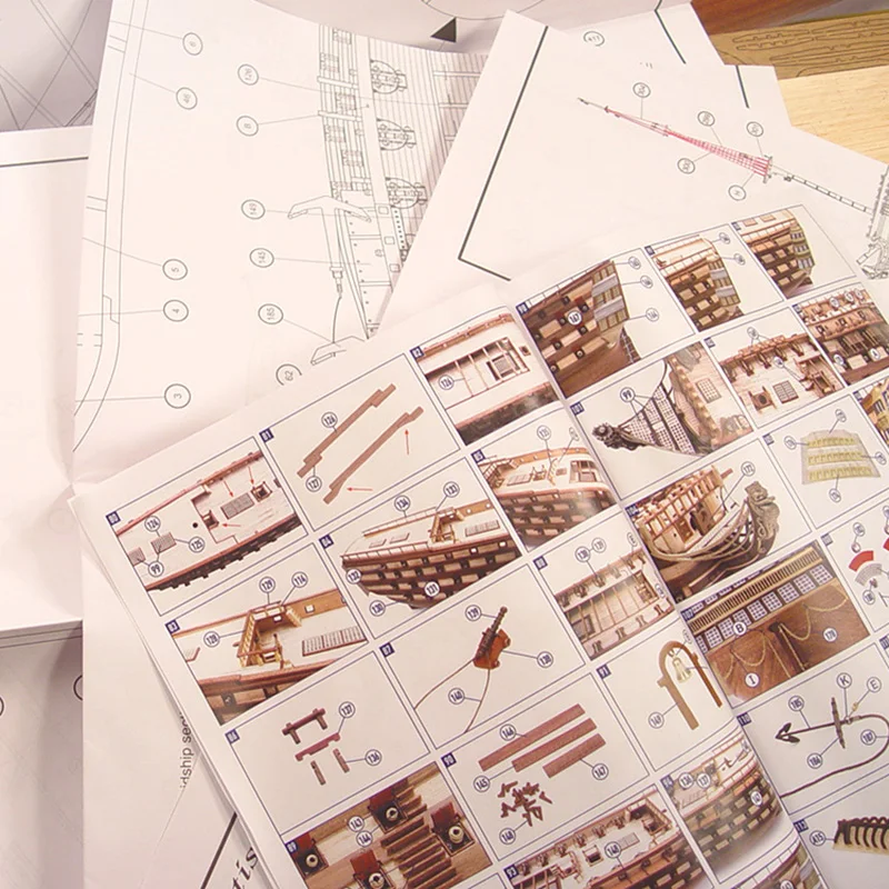 огромных листов полноразмерных чертежей с выкройками парусов, схемами рангоута и проводки такелажа. Дополнительно мы прилагаем перевод инструкции на русский язык с нашими замечаниями и комментариями.
