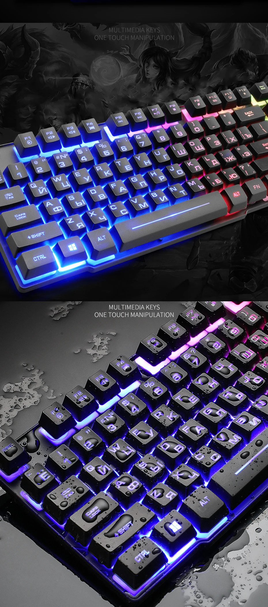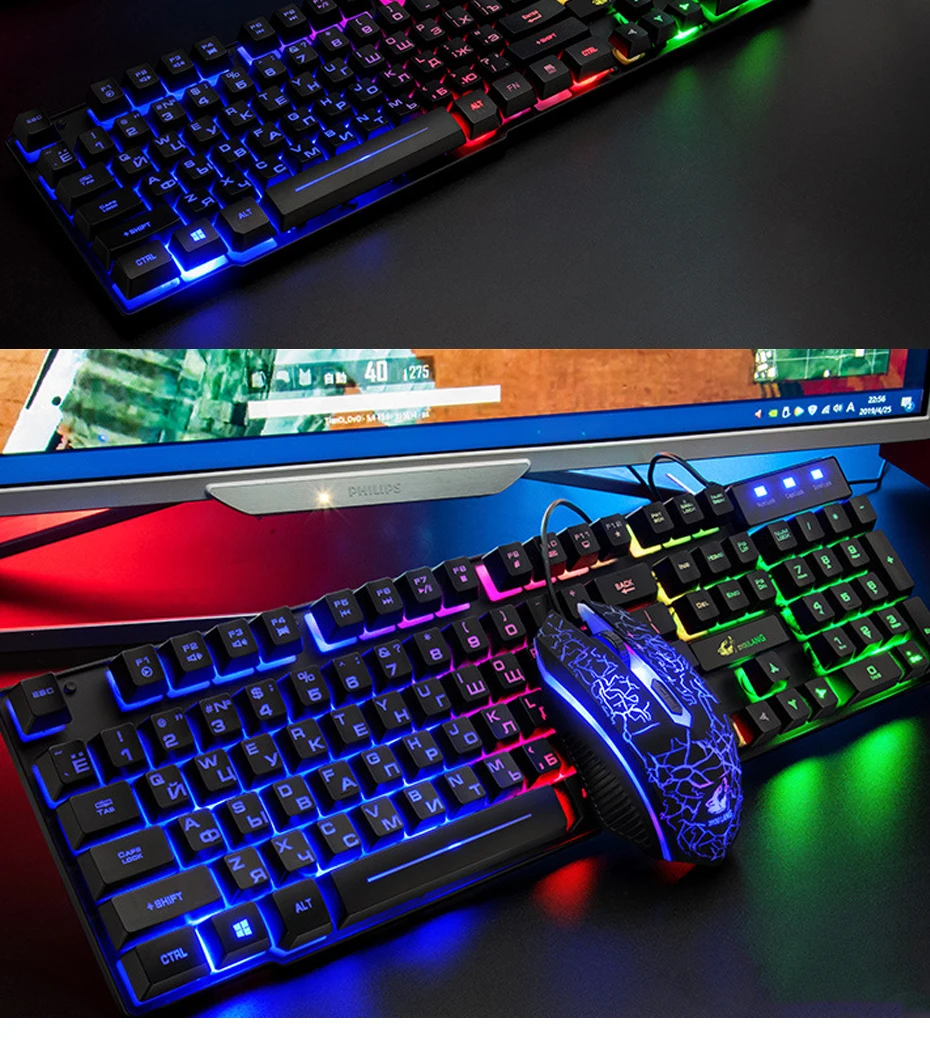 Отзывы о Русская Механическая мышь клавиатура БЕСПЛАТНО Wolf T5 игровой Радужный светящийся