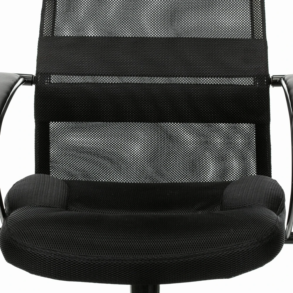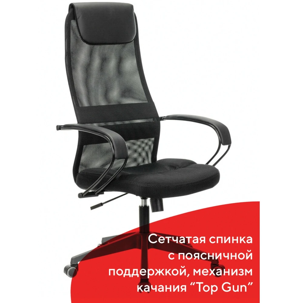 Макс. нагрузка до 120 кг. Обивка сетка + кожзаменитель + мебельная ткань TW. Механизм топ-ган с регулировкой под вес и фиксацией в рабочем положении. Металлические подлокотники с мягкими накладками. Пластиковая крестовина.