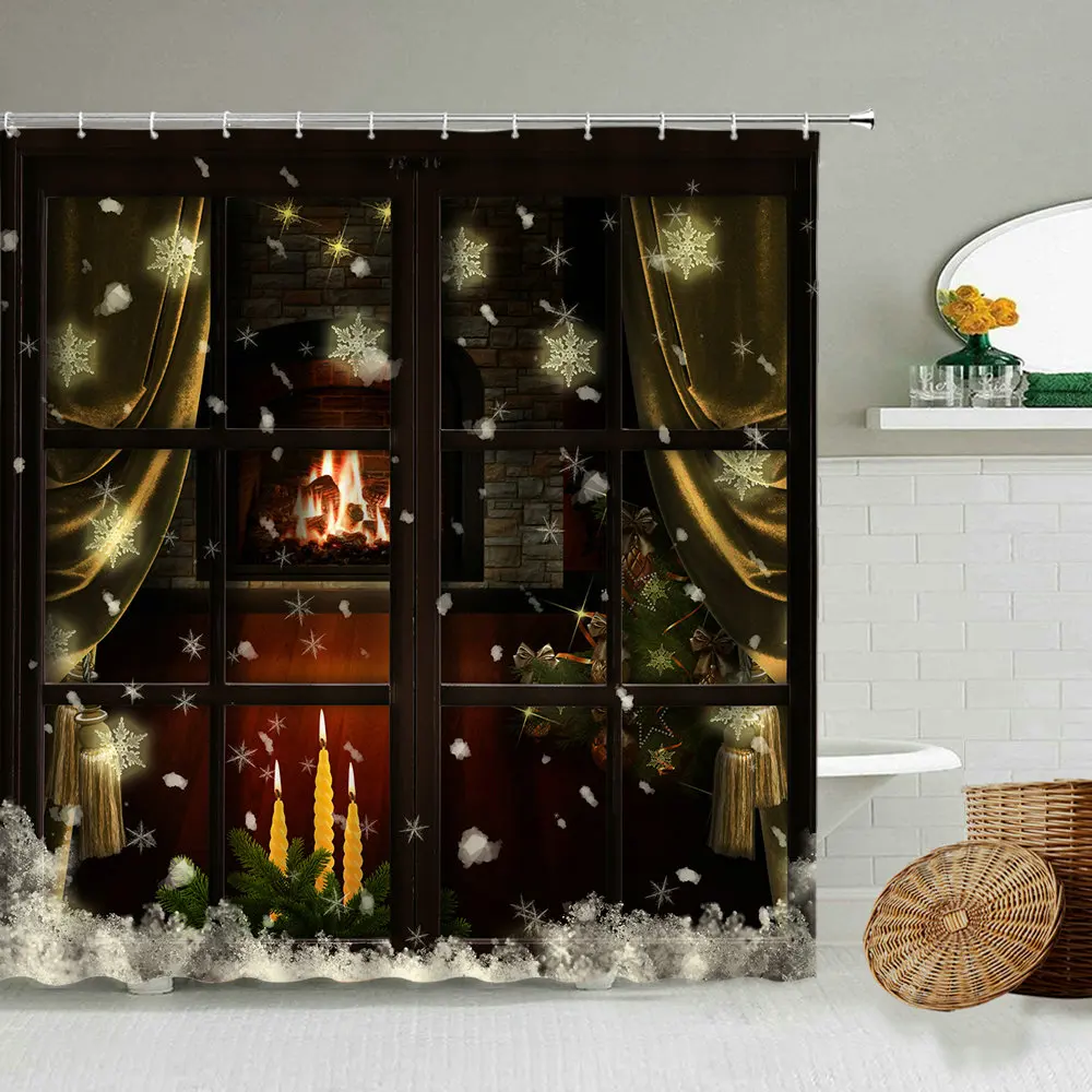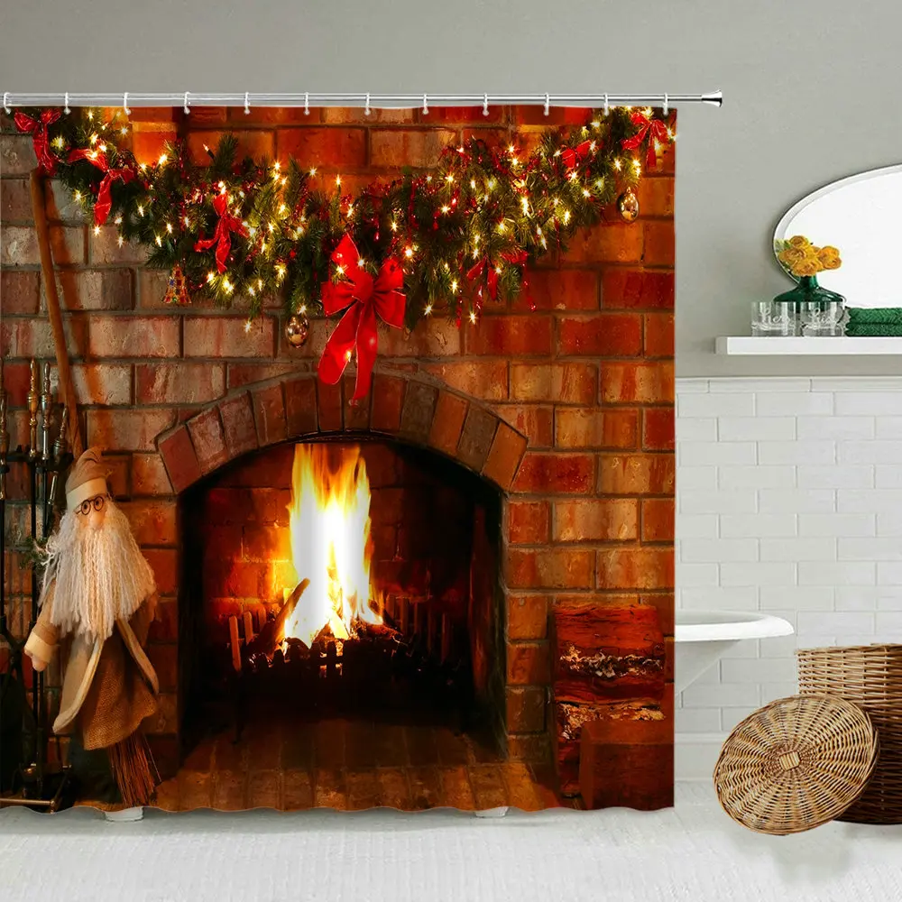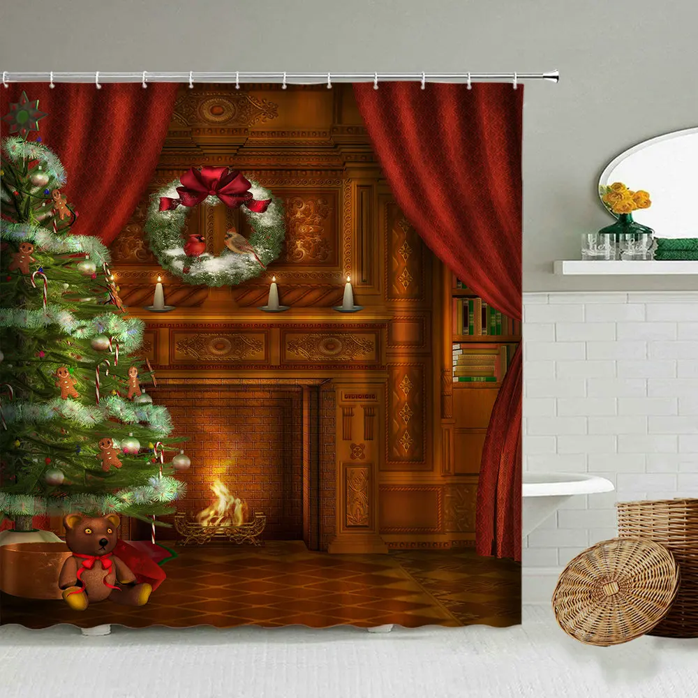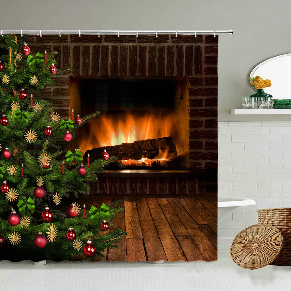 Отзывы о Рождественские новогодние декоративные занавески для душа шторы камина дома