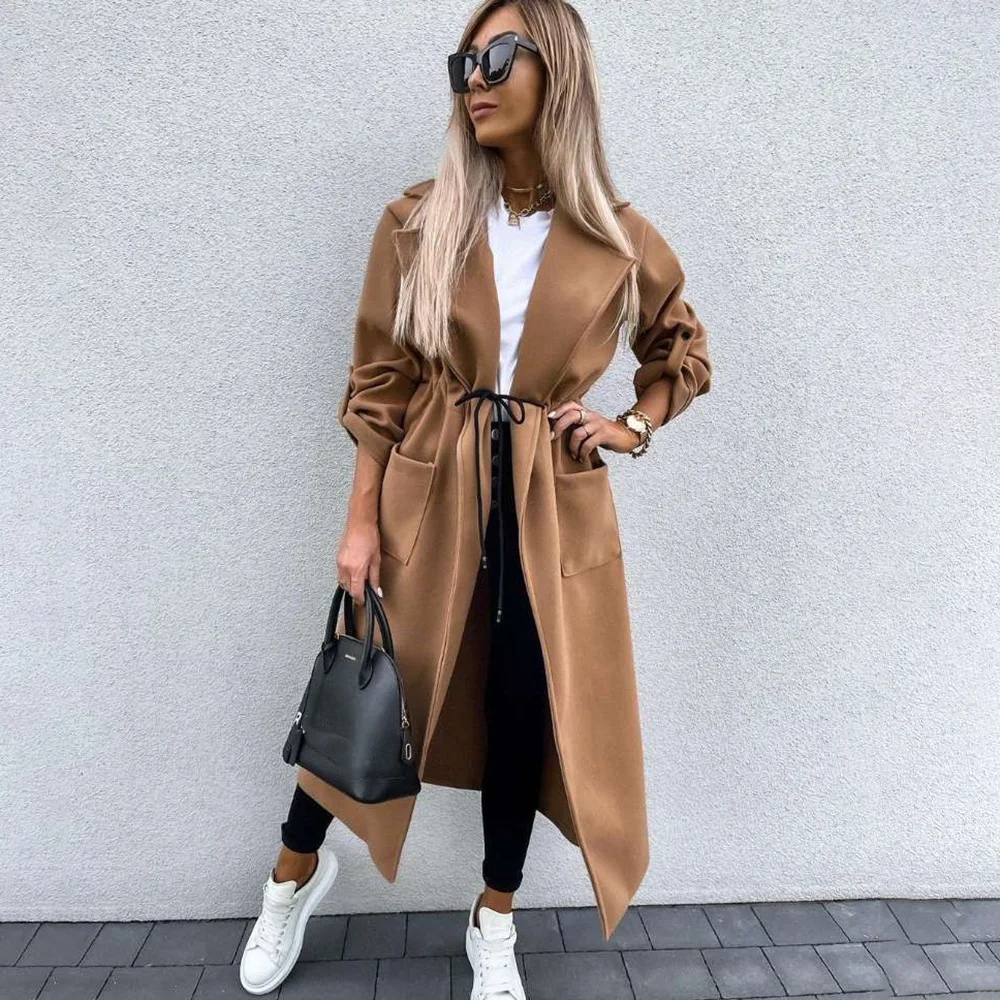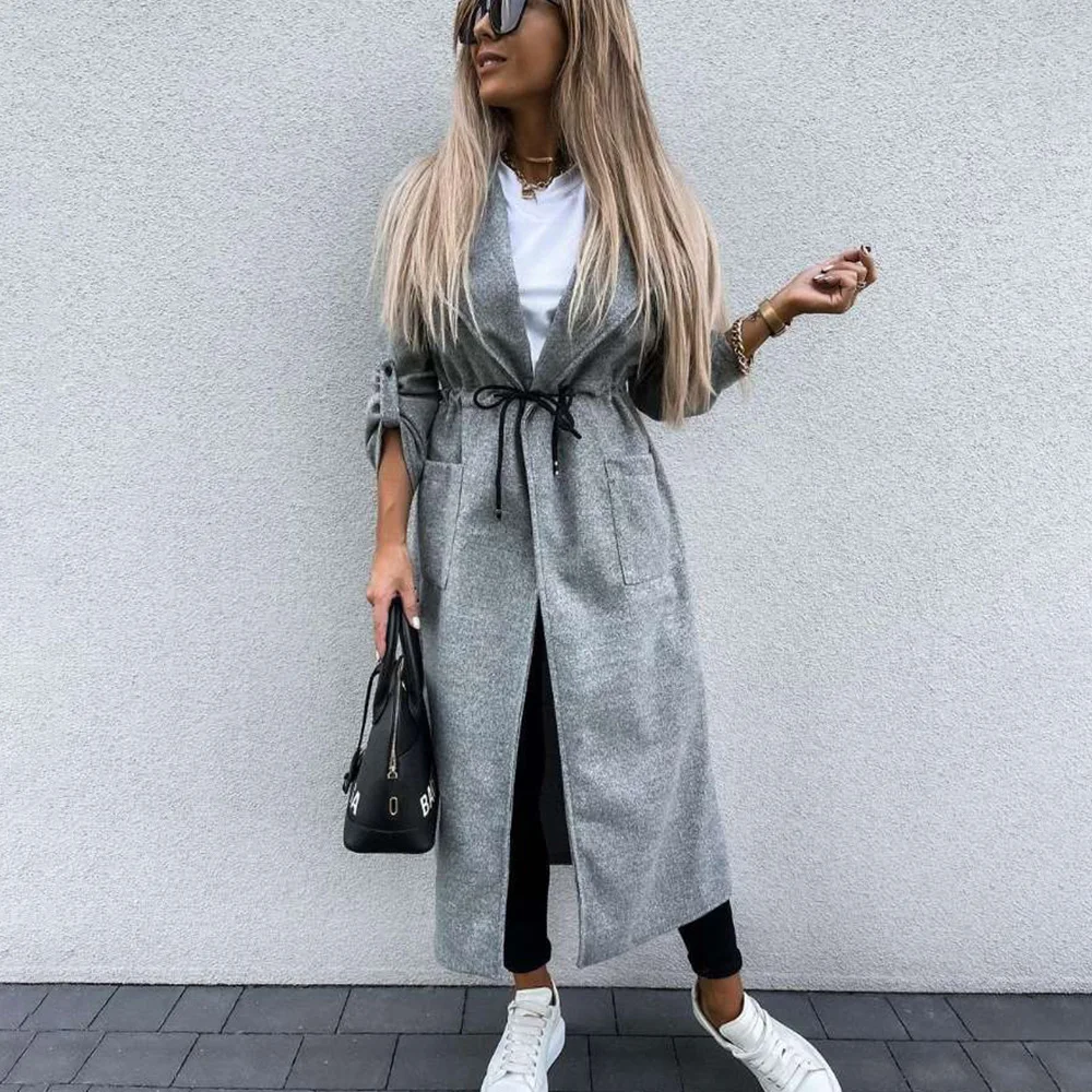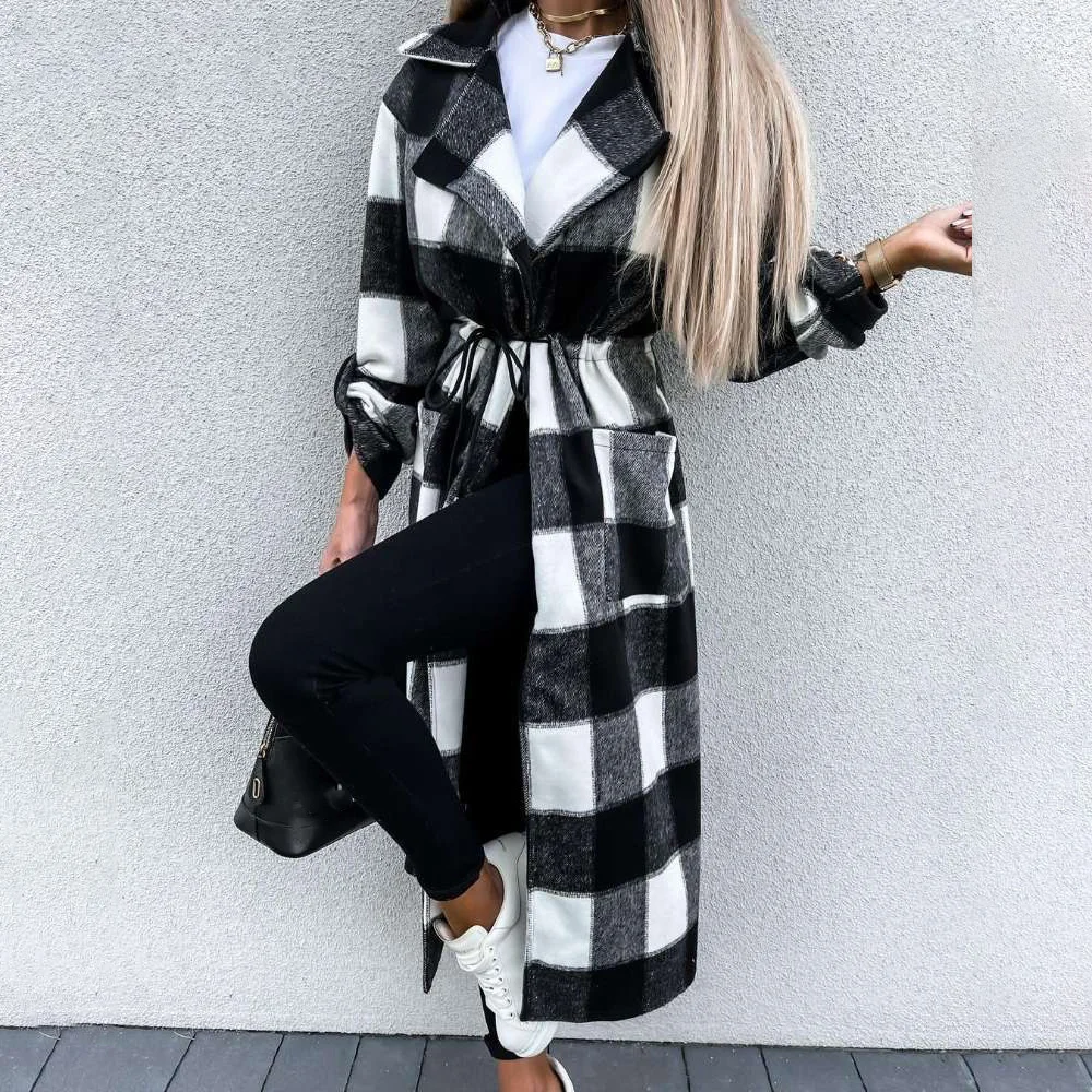 Отзывы о Женское длинное шерстяное пальто повседневное теплое клетчатое на шнуровке
