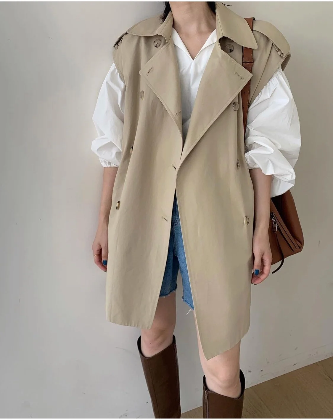 Отзывы о Женский двубортный жилет средней длины свободного покроя без рукавов с