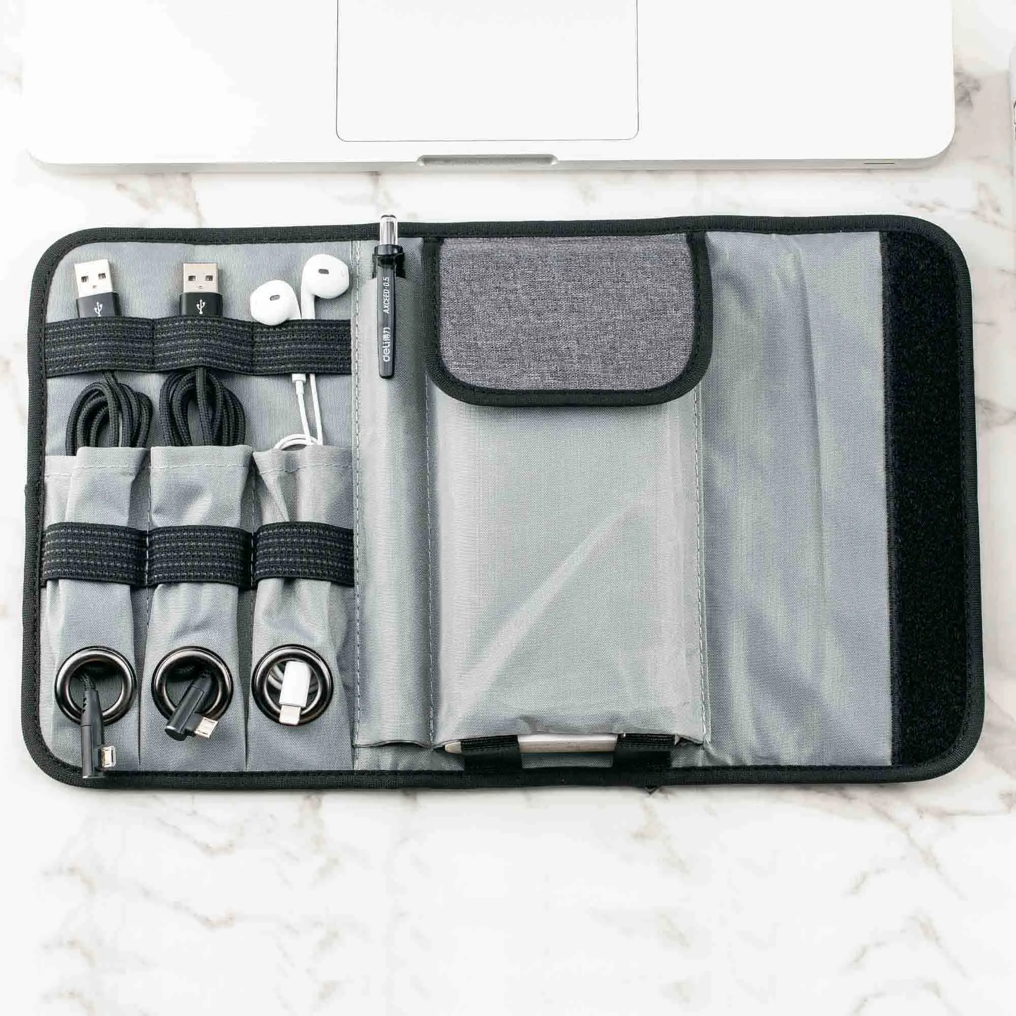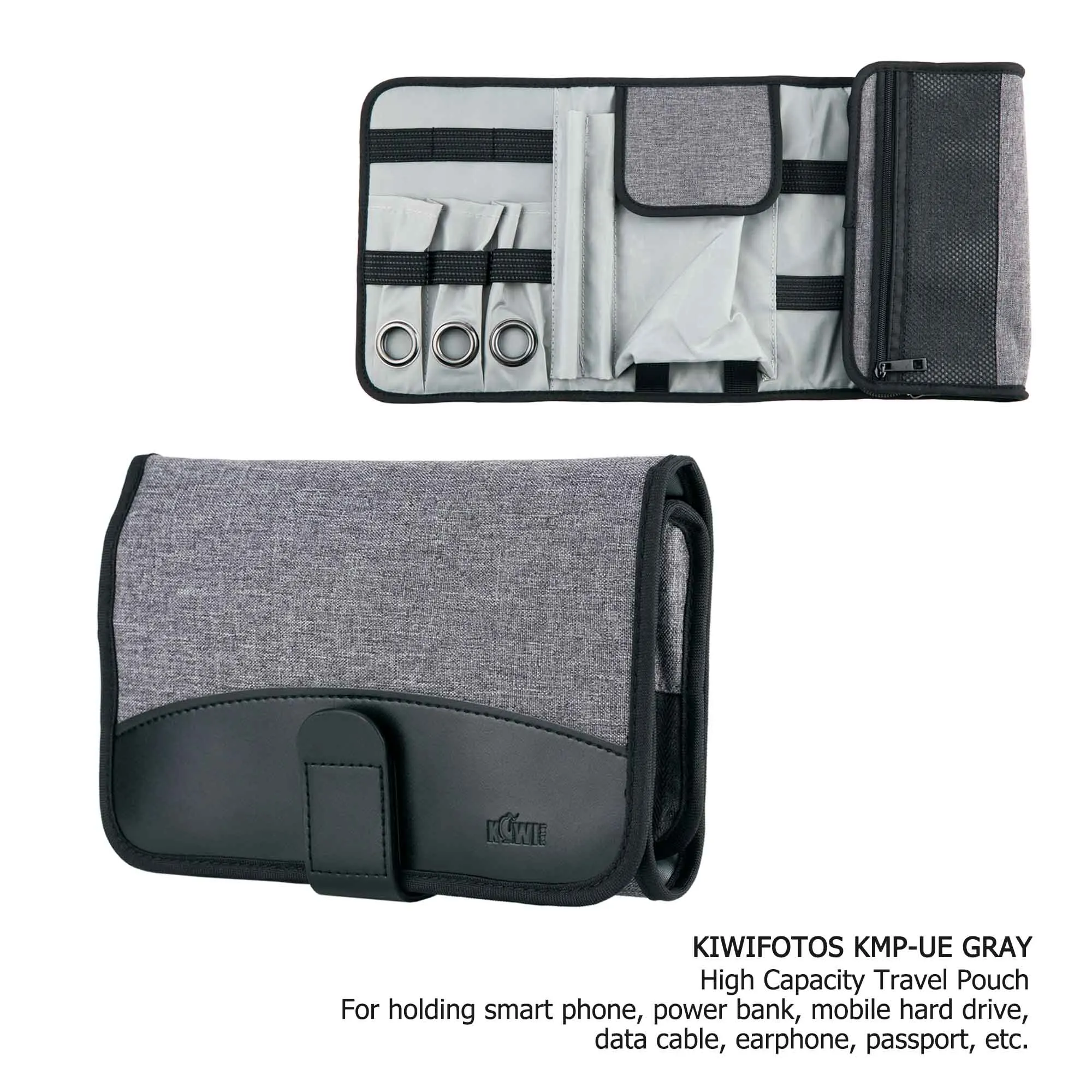 KIWIFOTOS Универсальный вместительный органайзер для путешествий, сумка для электронных аксессуаров, смартфон, внешний аккумулятор, мобильный жесткий диск, кабель для передачи данных, наушники, паспорт, карты памяти SD, серый цвет, с карманом на молнии
