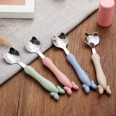 New Creative Cartoon Spoon Environmentally Friendly Material Teaspoon 4 Colors Dessert Spoon Gift for Kids Kitchen UtensilsUSD 28 / bag /lot 1