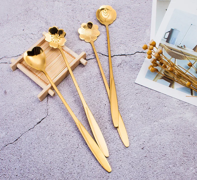 Creative flower Dessert Spoon Stainless Steel Cherry Spoon with long handle ice-cream spoon coffee stirring spoon Mixing stickUSD 3.98 / bag /lot 1