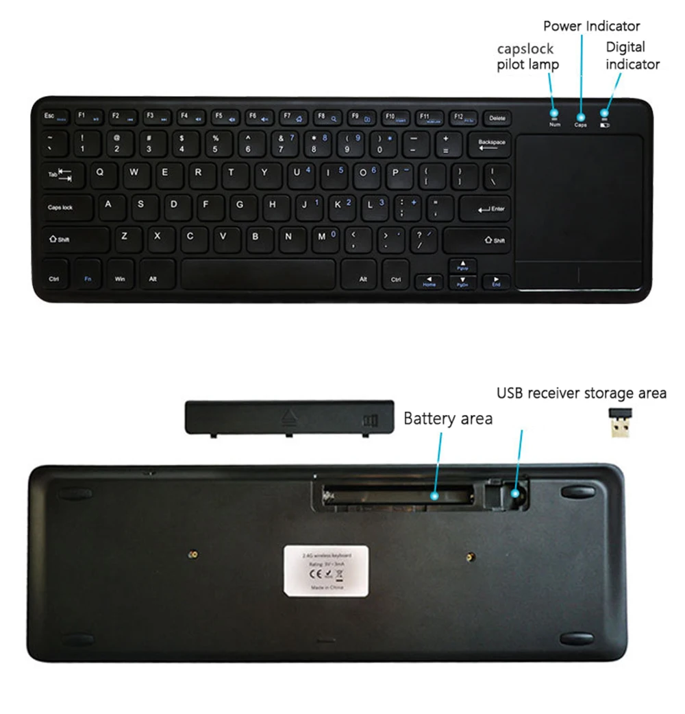 -2,4G Беспроводная клавиатура сенсорная панель
