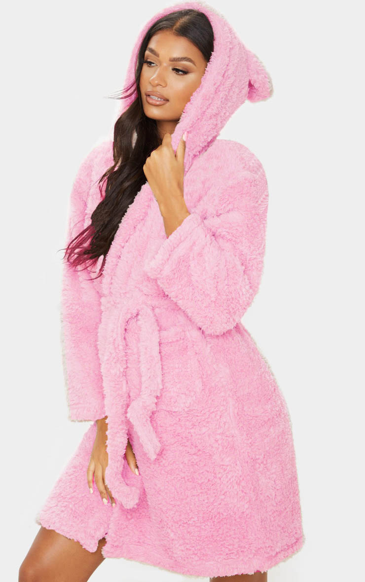 Женский зимний теплый ночной халат, двусторонняя плюшевая Милая Ночная рубашка с капюшоном и ушками животных, банные халаты на шнуровке с длинными рукавами, пижамыТаблица размеров: