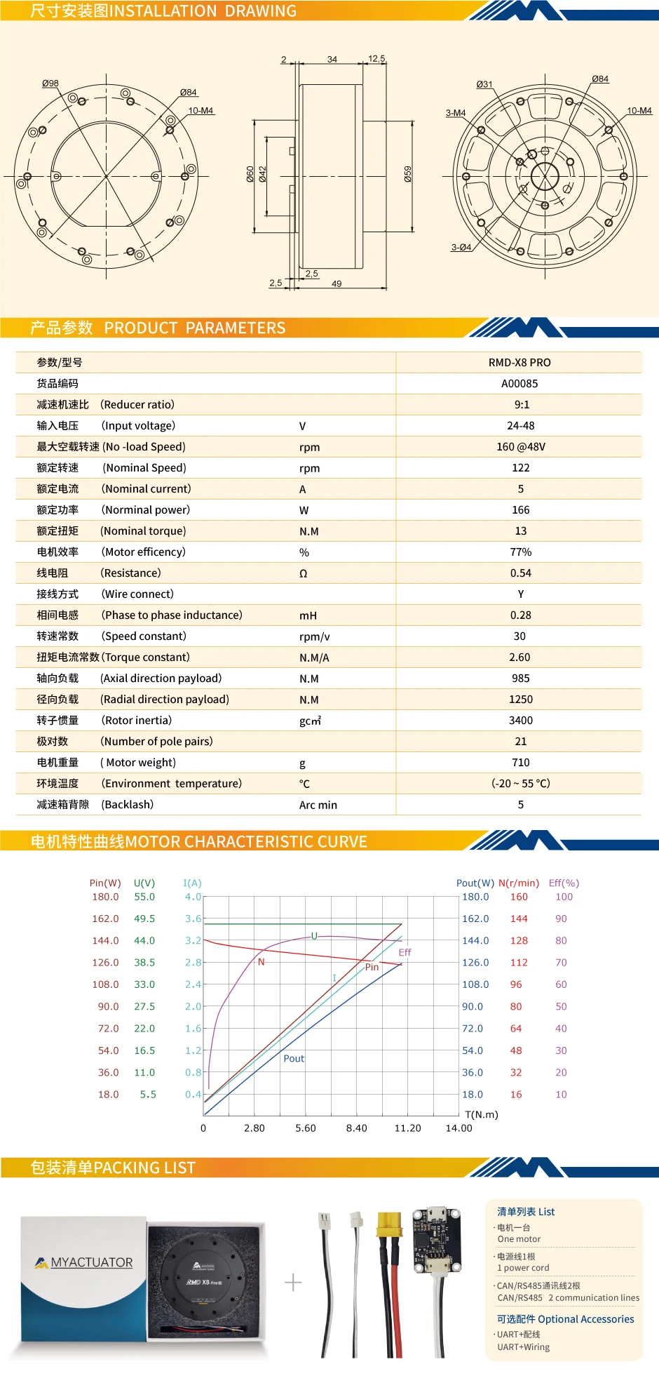 Отзывы о RMD-X8 PRO 1:9 бесщеточный Серводвигатель постоянного тока для актуационной системы