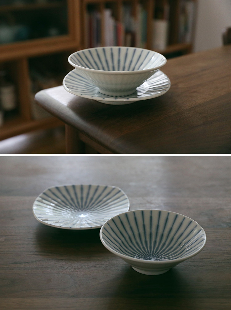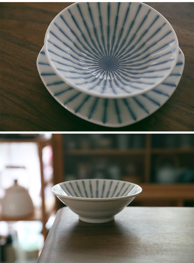 NOMICI, блюда в синюю полоску, миски для риса, наборы свежей бытовой посуды, японская посуда, тарелки для завтрака, керамика,