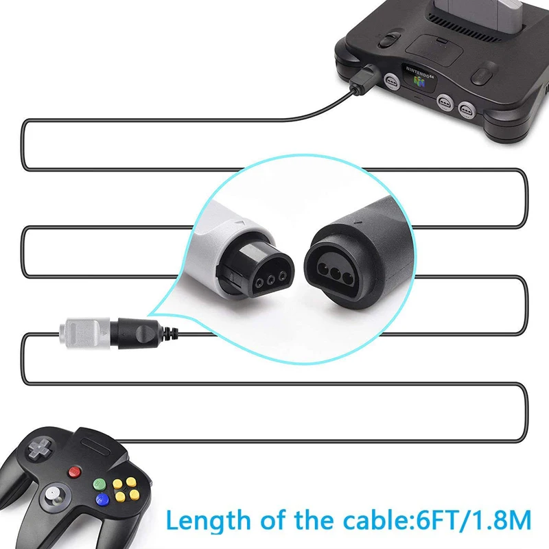 6 футов/1,8 м кабели предотвращают вас от того, что вы ограниченное туда, где вы можете пойти в то время как вы используете ваш N64 контроллеров, более удобный в использовании, в то время как сидеть на диване или лежать на кровать с комфортом. Легко оставаться в игре!