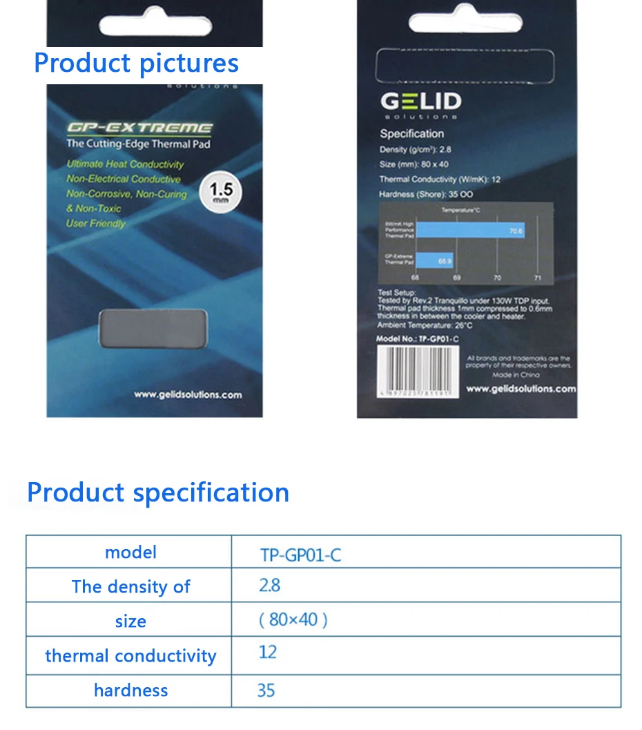GELID GP-EXTREME 80X40 0,5 1,0 1,5 2,0 3,0 мм PC CPU GPU радиатор охлаждения северный и южный мост видео карта тепловой коврик W/MK 12