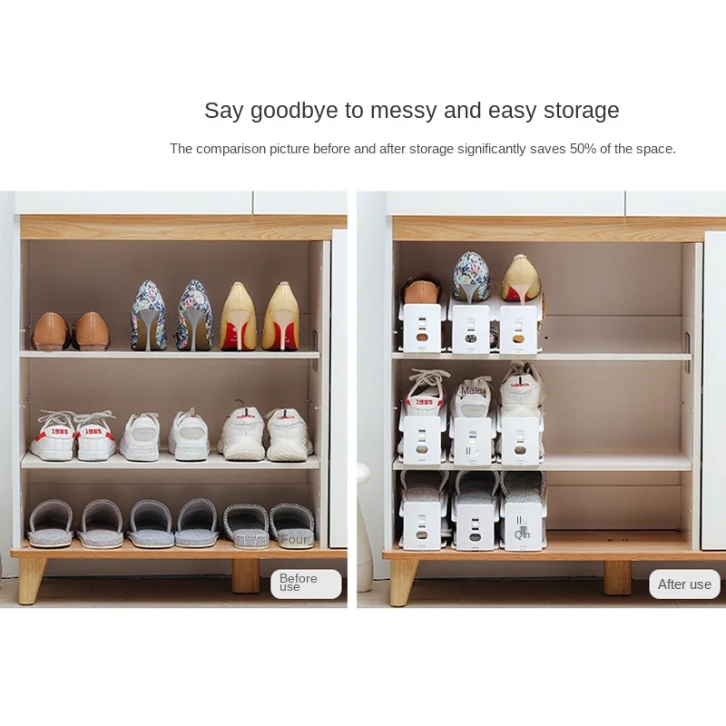 Shoes Rack: Solid color 3th gear adjustable shoe rack household items Double shoes rack Creative Plastic Shoes Rack Organizer Space-Saving Storage Adjustable Durable storage100% brand new and high quality.