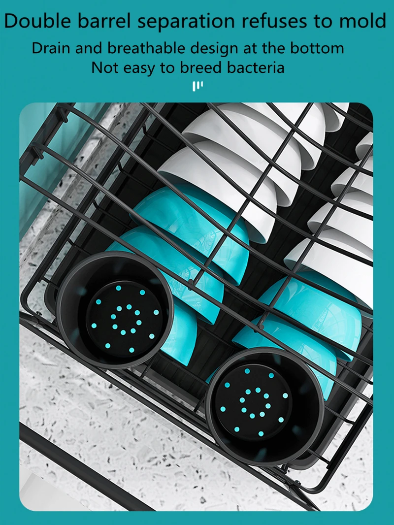 Многофункциональный стеллаж для хранения посуды, быстро сливает воду с посуды. Несколько разделов, аккуратный и упорядоченный, эффективное использование, экономит кухонное пространство.