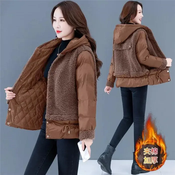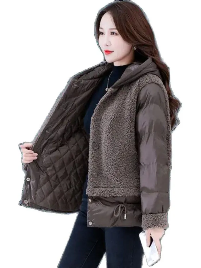 Отзывы о Куртка женская из овечьей шерсти свободная с капюшоном на осень и зиму 2021 - купить