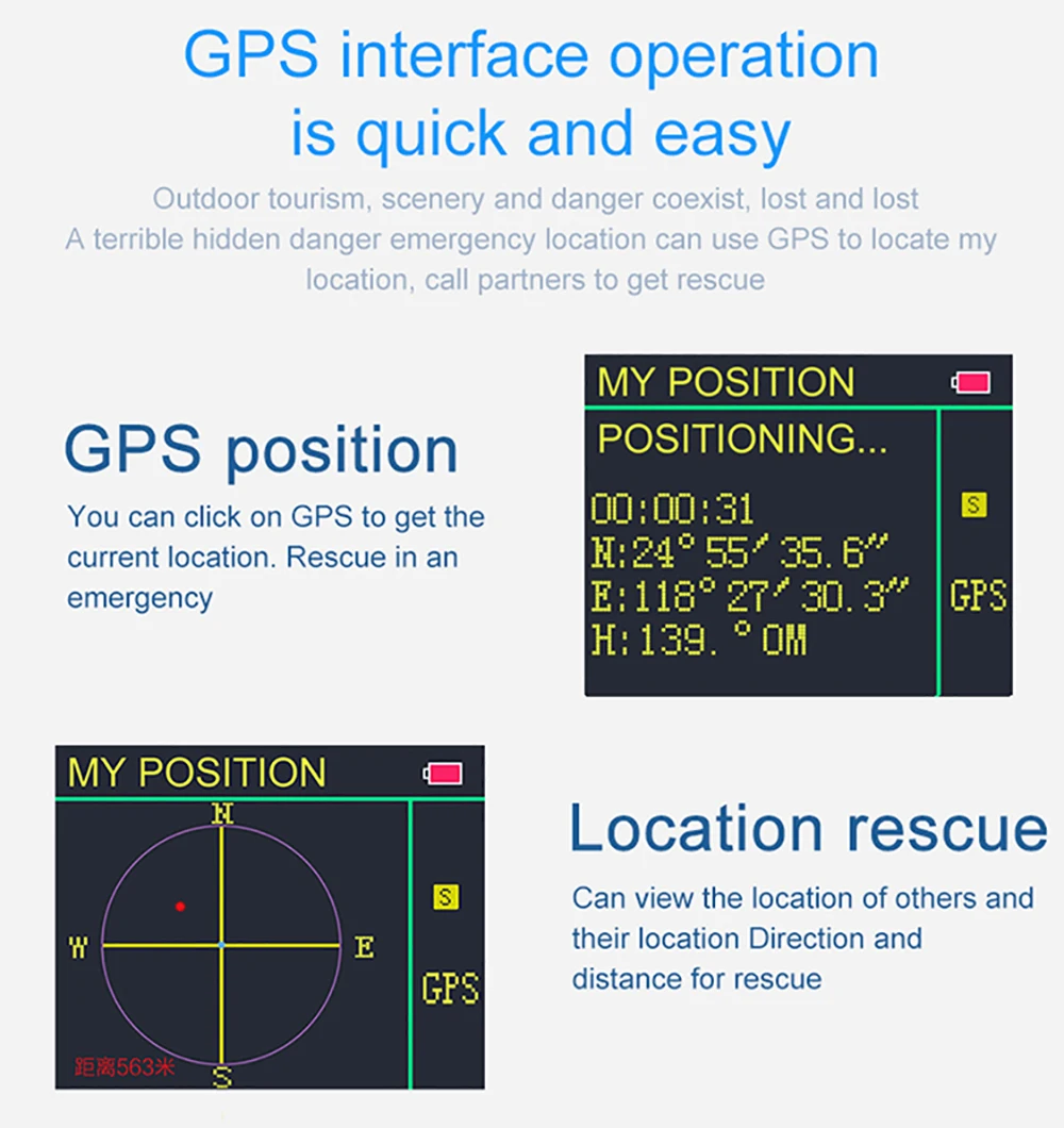 Встроенная система позиционирования GPS быстро запускается и точна в позиционировании; Ваше текущее положение, расстояние и высота могут отображаться на экране, и