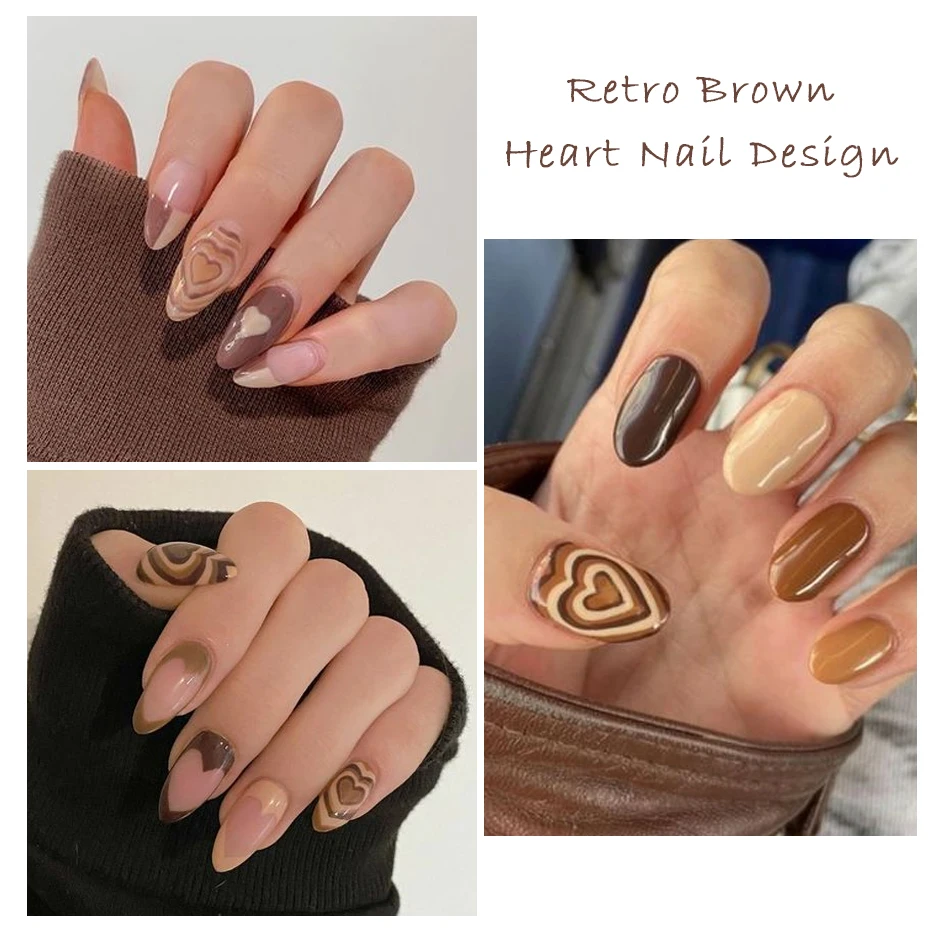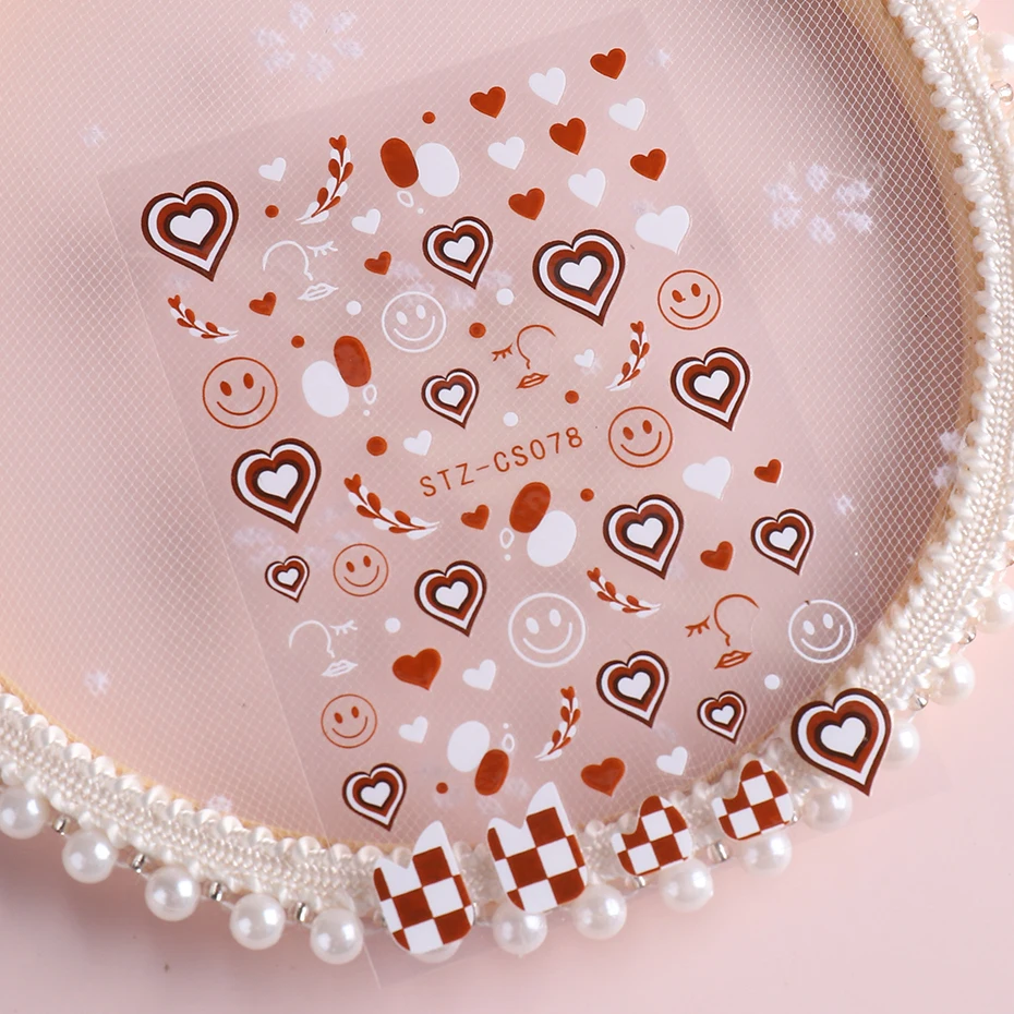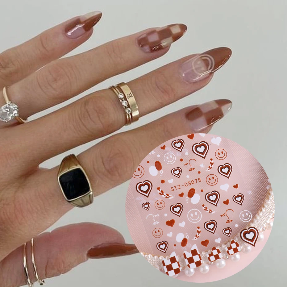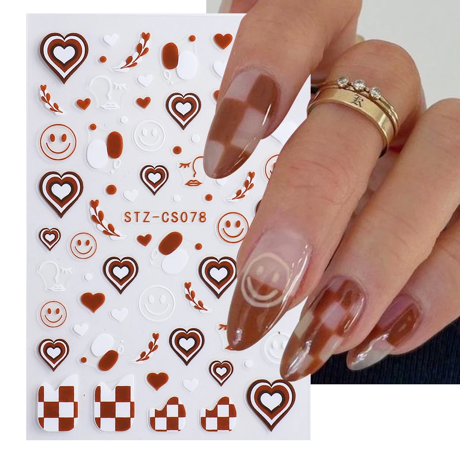 Товар: Ретро коричневое Сердце 3D наклейки для ногтей модные художественные наклейки кофе латте геометрические улыбающееся лицо слайдер маникюрные подвески