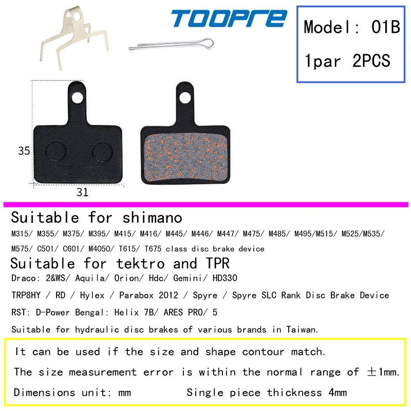 TOOPRE 1 пара подушечек для B01S M375 M395 M416 M445 M446 M485 M486 M515 M525 велосипедные полуметаллические полимерные Керамические дисковые тормозные колодки