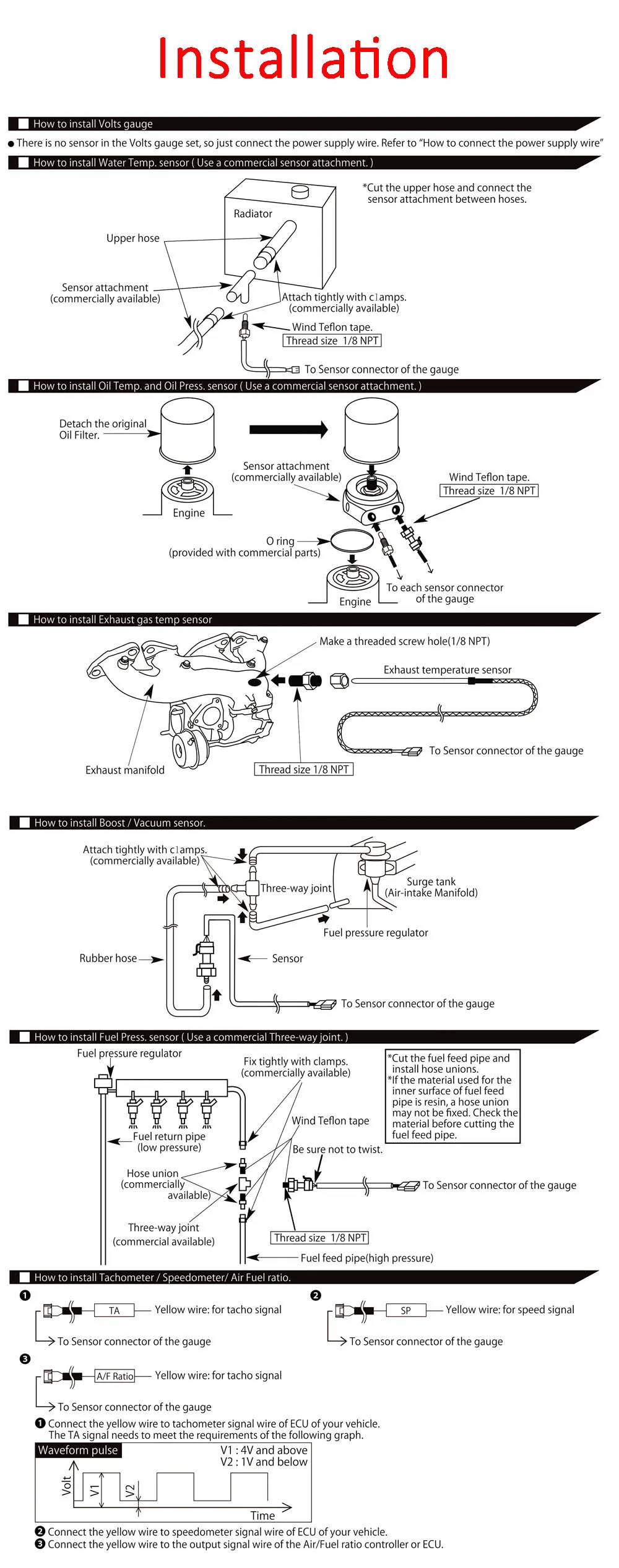 Датчик напряжения * 1 датчик температуры воды * 1 Температура масла * 1 пресс для масла * 1 об/мин * 1 турбо * 1( 6 манометров)