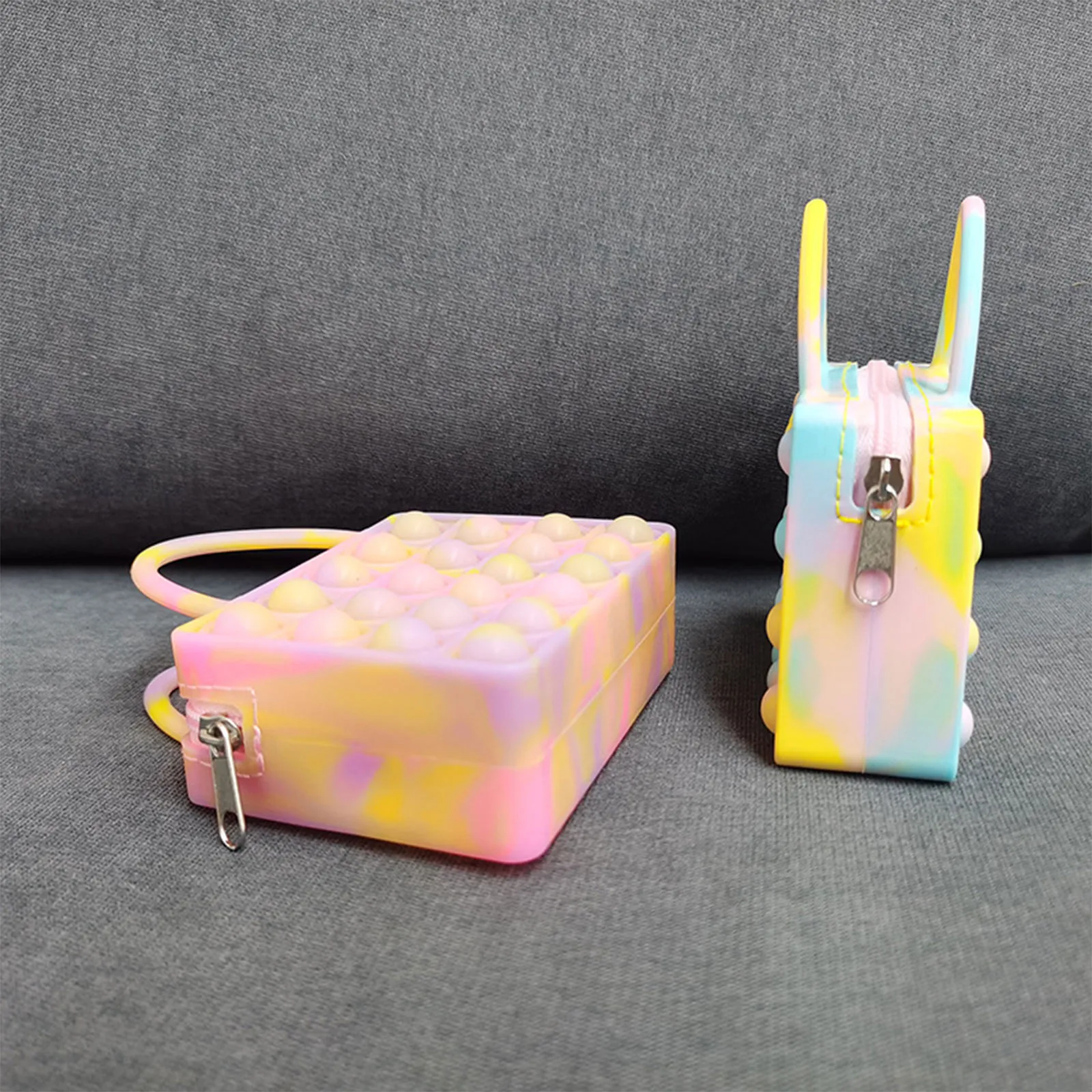 Сенсорная силиконовая пузырчатая прямоугольная сумка для хранения декомпрессионная мини-сумка-тоут с орнаментомОпишите: