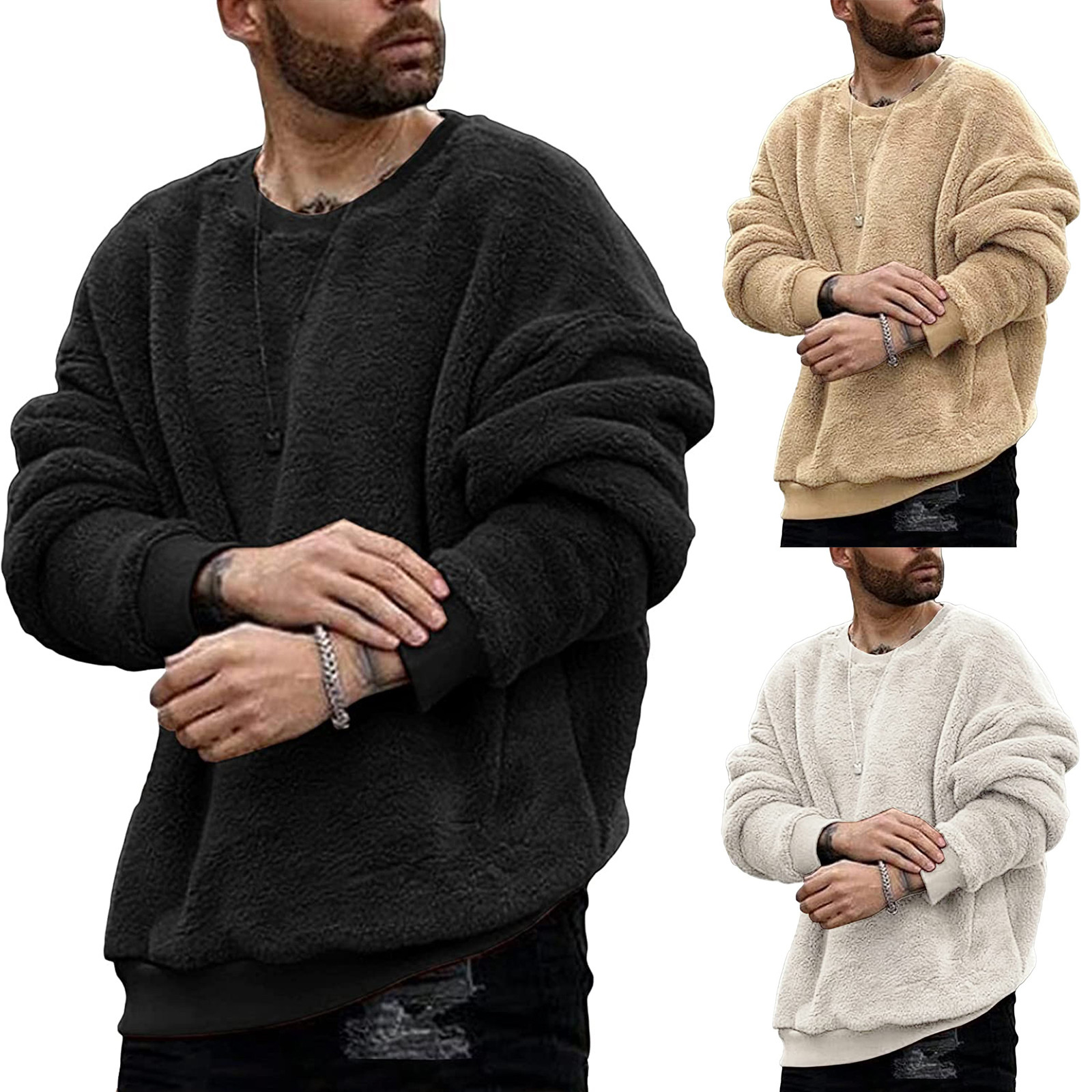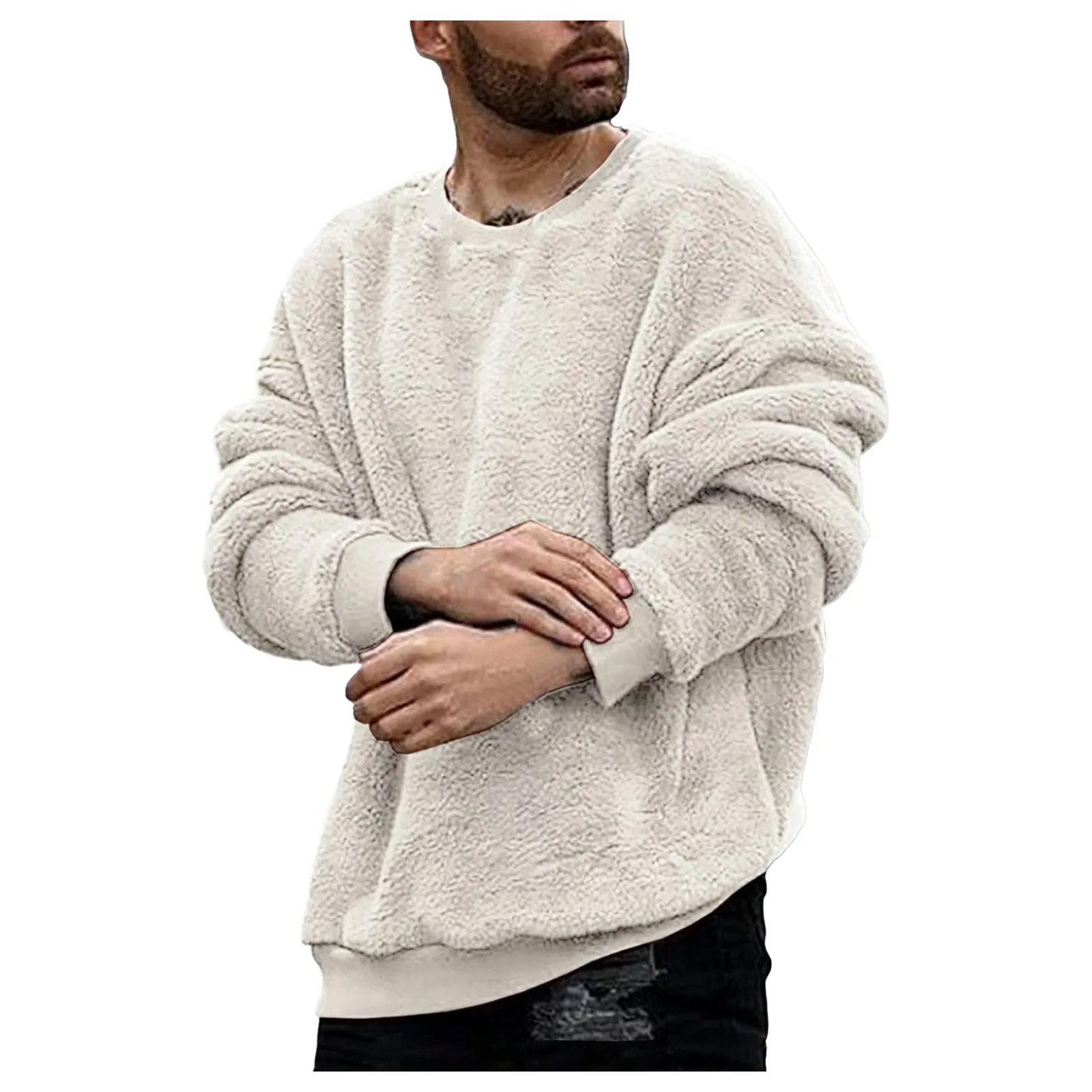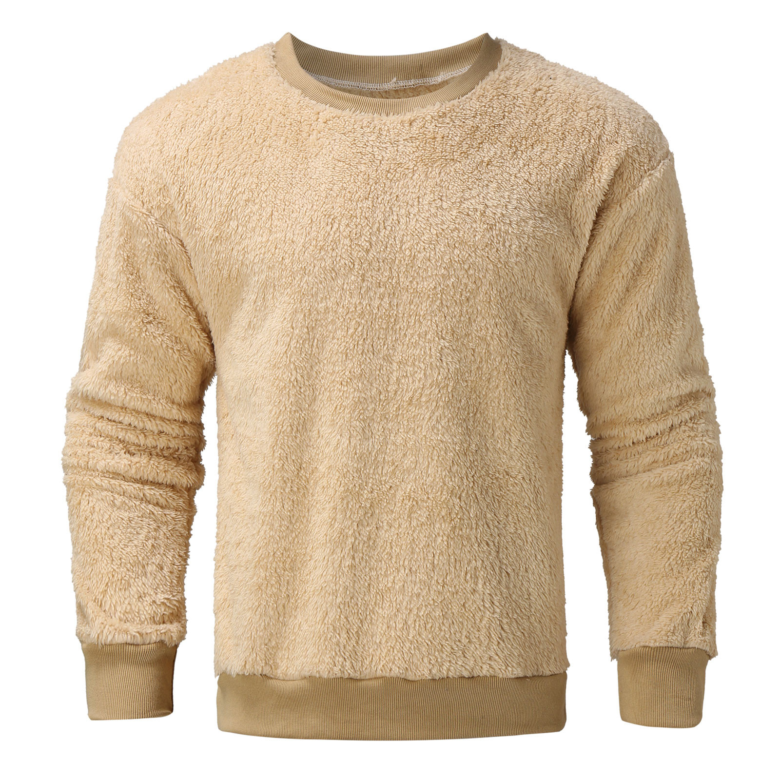 Мужской Пушистый пуловер с круглым вырезом, свитшоты с длинным рукавом, спортивная верхняя одежда с передним карманом на осень и зиму с капюшоном