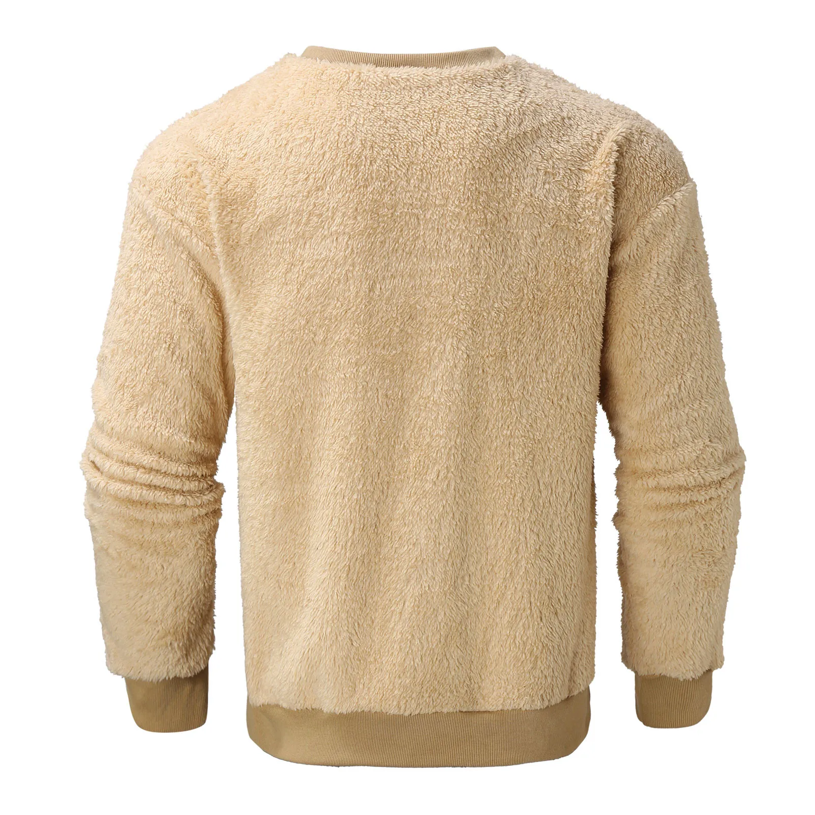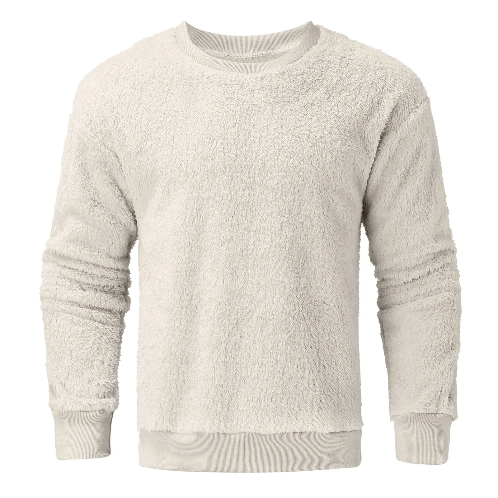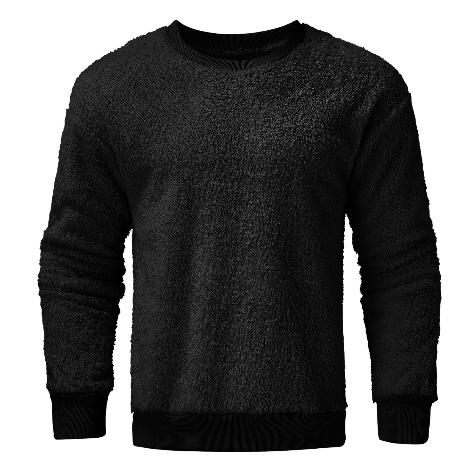 Мужской Пушистый пуловер с круглым вырезом, свитшоты с длинным рукавом, спортивная верхняя одежда с передним карманом на осень и зиму с капюшоном