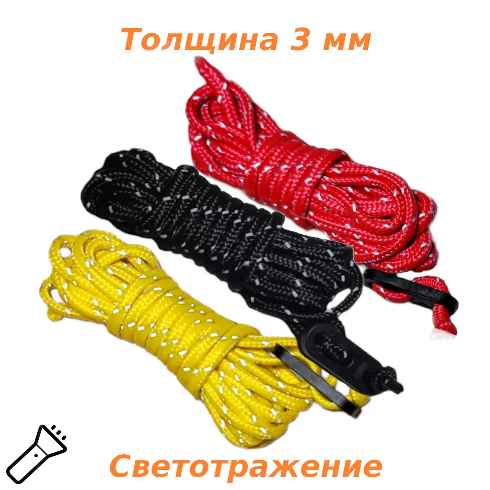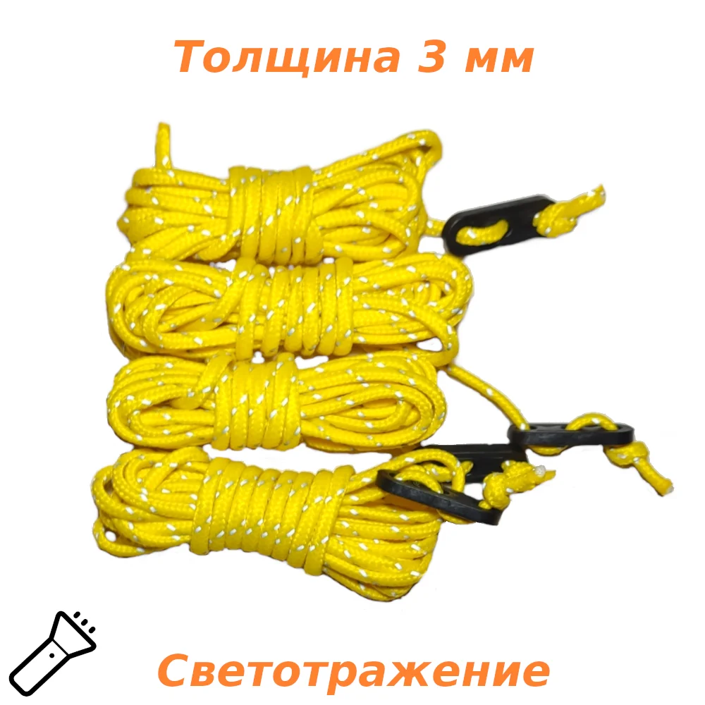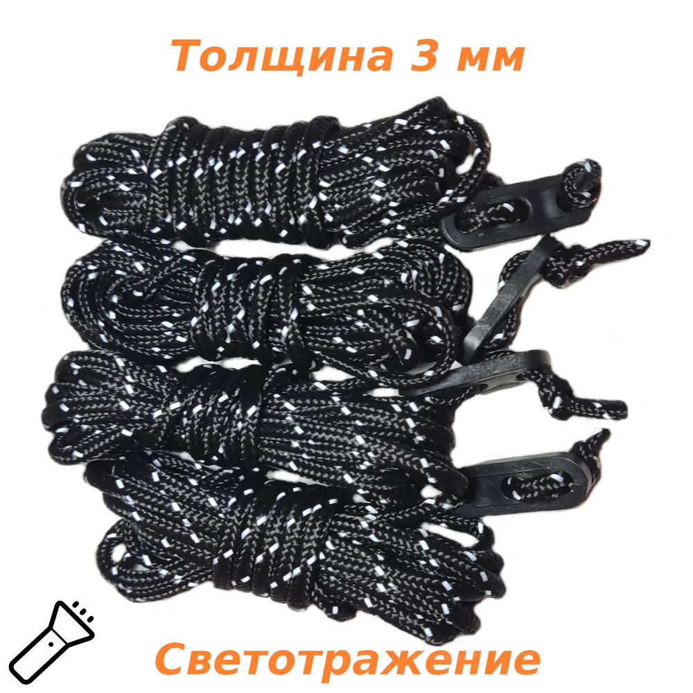 Отзывы о Оттяжки для тента палатки 3 метра 4 штуки Паракорд Светоотражающий шнур веревка