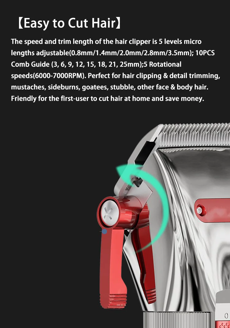 6000 об/мин используется для точной обрезки, 7000 об/мин подходит для обрезки основного тела, а длина удерживания волос может контролироваться по желанию.