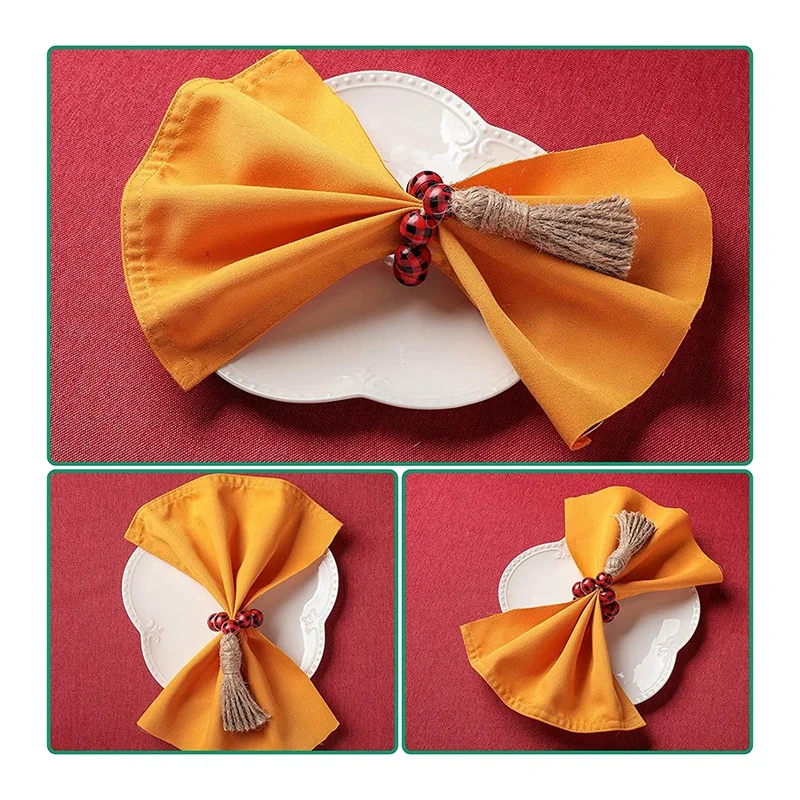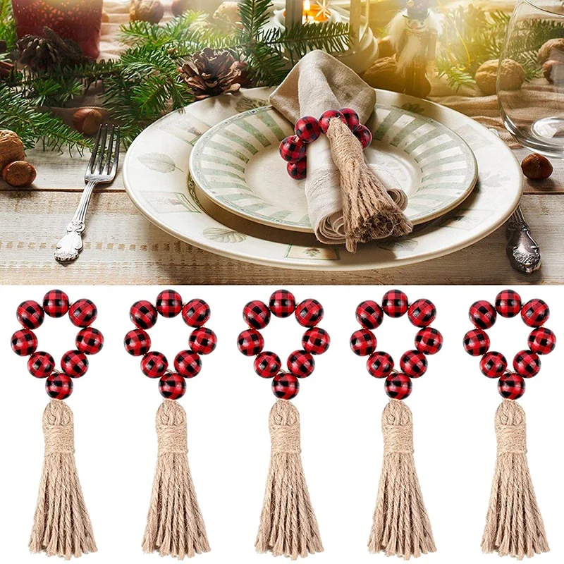 Отзывы о 6 Pcs Red And Black Buffalo Plaid Wood Bead Napkin Rings With Tassels Fall Christmas Wooden Ring Holders | Дом и сад