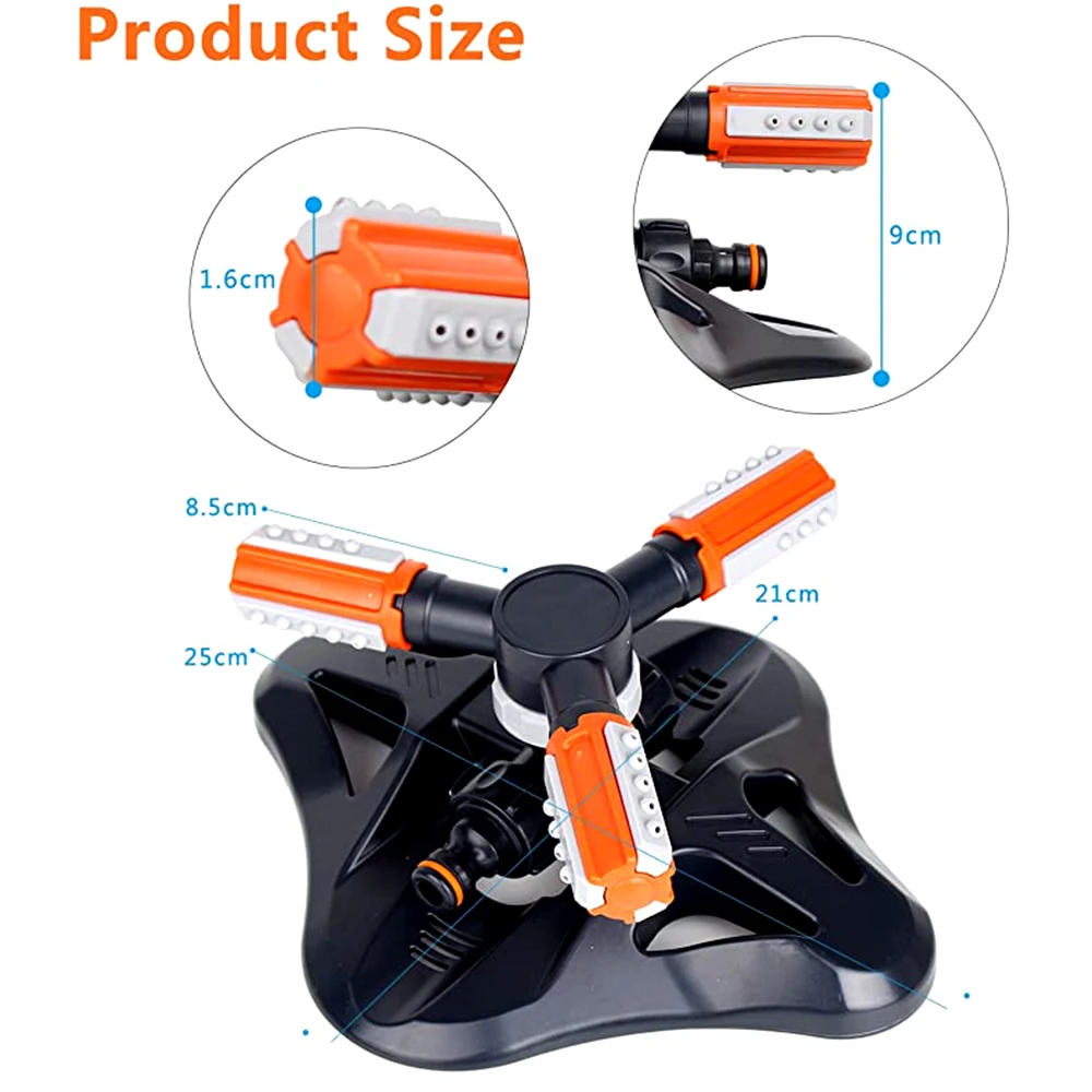 【 2 способа распыления воды, Высокоэффективная ирригация 】Разбрызгиватель газона оснащен 2 различными спринклерами, 360 ° автоматической вращающейся водой и в форме бабочки спринклер может равномерно распылить воду, регулировать скорость распыления. Разбрызгиватель садового газона автоматически вращается на 360 ° для распыления воды, с 3 регулируемыми поворотными дужками и 36 встроенными соплами, которые могут быть орошаны под разными углами. Есть 3 группы распылительных отверстий (3/4/5 отверстий в каждой группе) на руке, которые могут быть объединены свободно.
