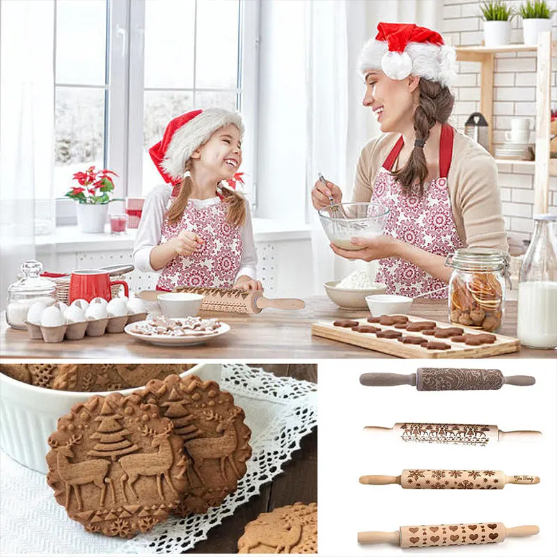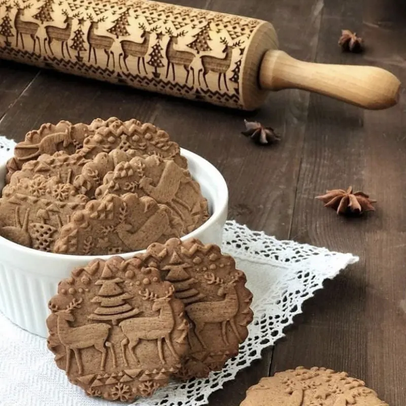 Отзывы о Рождественская Скалка с тиснением 35 см деревянная резная скалка для печенья