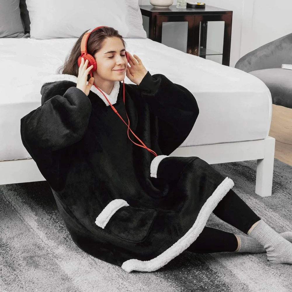 Другой, большой Центральный карман и вместительные рукава.-Отлично подходит для ношения на диване, на спортивных мероприятиях или прогулок.-Один размер подходит всем, чтобы держать вас уютно и тепло от головы до пальца!-- Машинная стирка-Изготовлен из ультра-мягкого флиса и с подкладкой с превосходным теплым шерпа комфортом! Основной цвет: синий, красный, розовый, черный, серыйСезон: зимаПовод: ежедневноМатериал: Коралловая флисовая тканьСтиль стирки: Механическая стиркаРазмер: Длина: 88 см рукав: 48 см бюст: 150 см плечо: 75 см Посылка включает в себя:1 одеяло