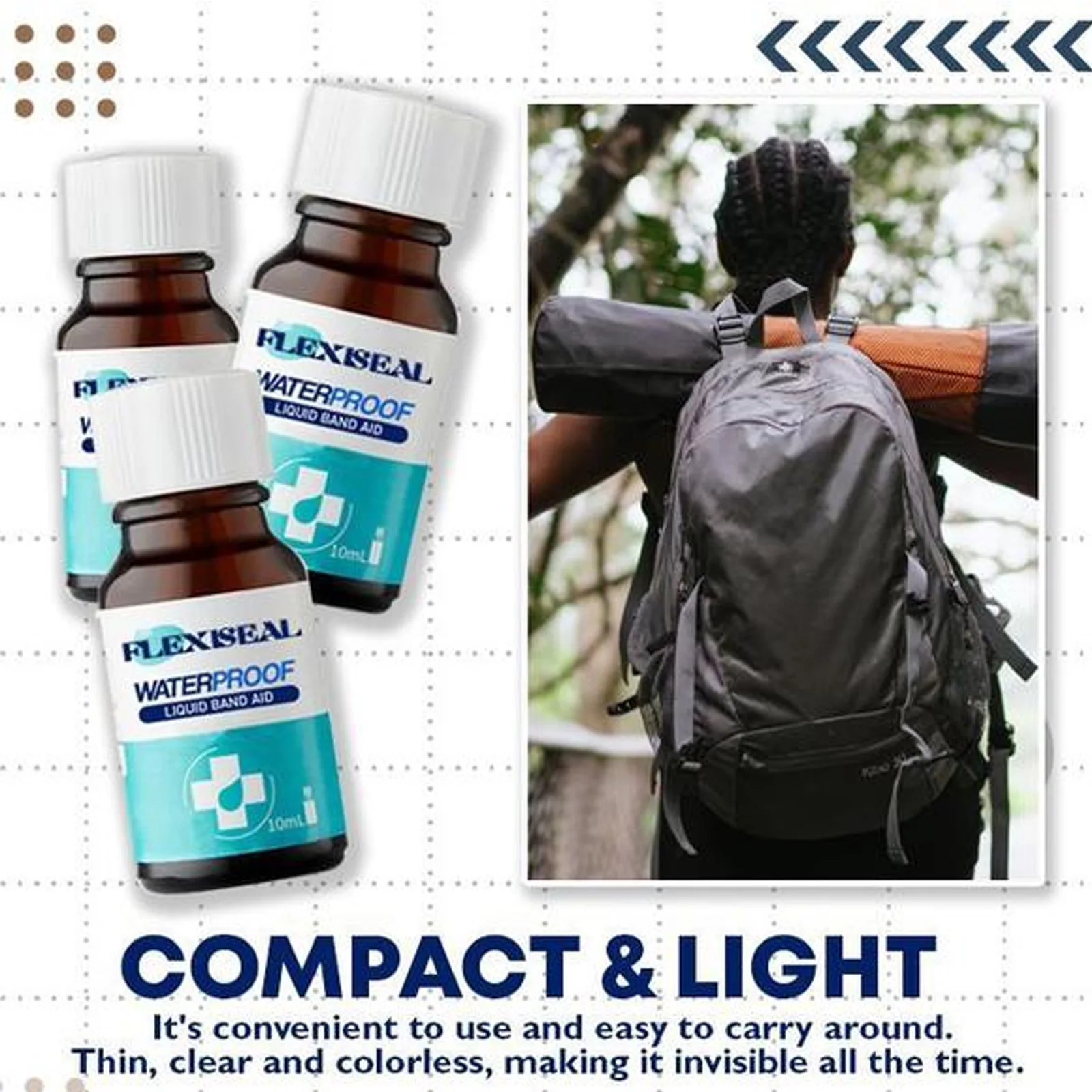 Гибкий и водонепроницаемый. Антисептик помогает предотвратить инфекции. Первая помощь помогает защитить от инфекции при небольших порезах, потертостях и ожогах.Отлично подходит для пеших прогулок, байкеров, бегунов, котелок, теннисистов и музыкантов