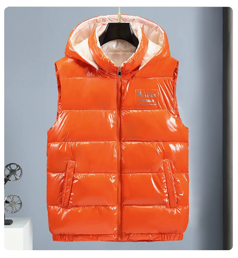 Отзывы о Осенне-весенняя блестящая безрукавка #3653 мужской жилет с капюшоном ярких цветов