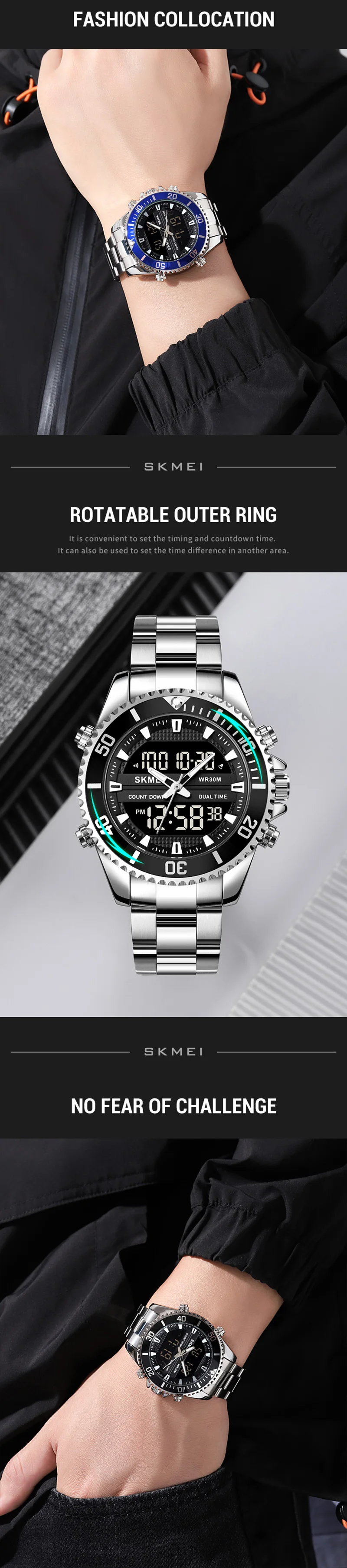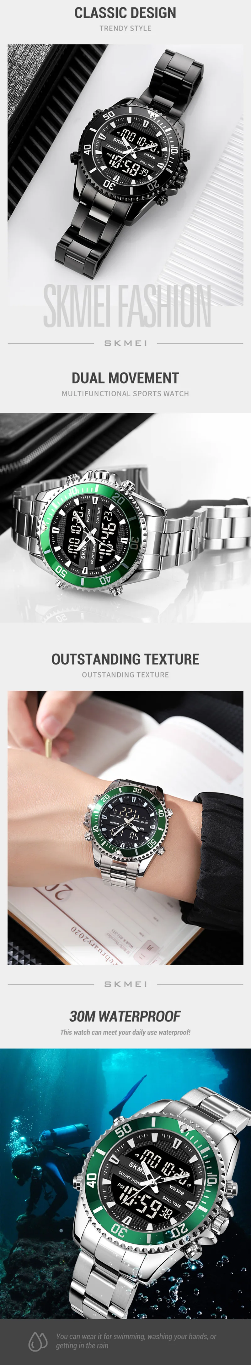 SKMEI Мужские Цифровые часы с хронографом из нержавеющей стали Luminou наручные часы светодиодные Мужские наручные часы для мужчин Relogio Masculino